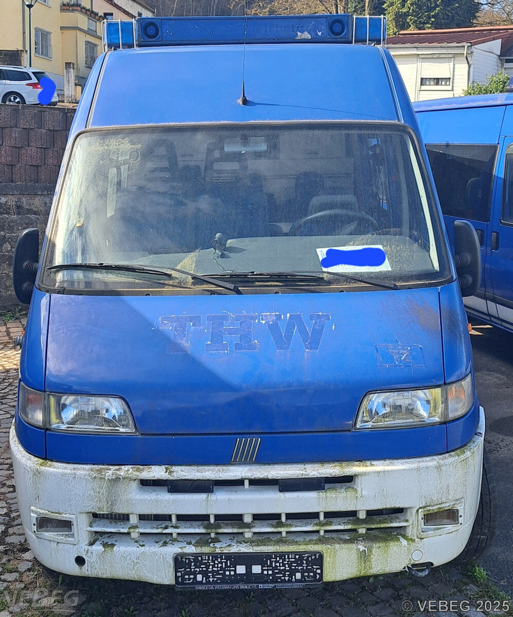 BemerkungenTermine für Besichtigung oder Abholung sind mit der zuständigen Lagerortdienststelle verpflichtend vorab per Telefon /oder E-Mail zu vereinbaren.Telefonische Voranmeldung ist unbedingt erforderlich. Das Fahrzeug steht außerhalb. Die Rechnungsstellung erfolgt zuzüglich der gesetzlichen Umsatzsteuer. GebotsbasisStückBitte beachten Sie auch die Hinweise und Bedingungen im Vorspann zu dieser Ausschreibung: Die von der VEBEG angebotenen Fahrzeuge stammen aus Aussonderungen ihrer Auftraggeber. Einzelheiten zum Zustand der jeweiligen Fahrzeuge entnehmen Sie bitte den Lostexten. Zusätzlich verweisen wir ausdrücklich auf Abschnitte B und G unserer Allgemeinen Geschäftsbedingungen (AGB). Fahrzeuge die nach Einschätzung der VEBEG der Ausfuhrgenehmigungspflicht unterliegen, sind mit Verweis auf die Punkte E3 und E4 unserer AGB entsprechend gekennzeichnet. Zum Gebotspreis kommt die gesetzliche Umsatzsteuer hinzu. Die Differenzbesteuerung gemäß § 25a UStG wird nur angewendet, wenn dies ausdrücklich in der jeweiligen Ausschreibung angegeben ist. | Lagerort / StandortBundesanstalt Technisches HilfswerkLV Hessen, Rheinland-Pfalz u. Saarland Regionalstelle Saarbrücken Metzer Straße 153 Tel.: 0681 50082-0 Frau Lorenz 66117 Saarbrücken |