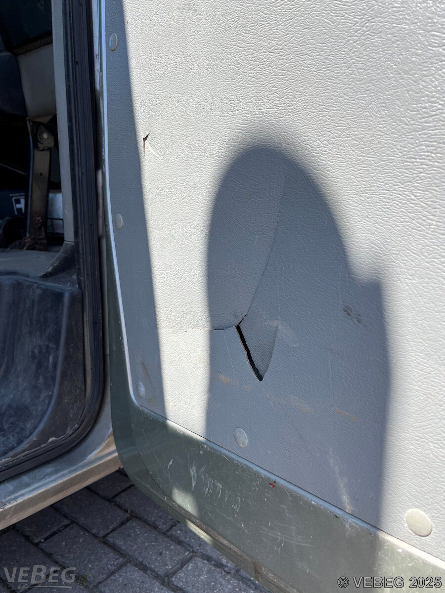 Unfallschaden im Frontbereich, hintere Bordwand eingedrückt, Batterie defekt, starke Gebrauchsspuren, Sitzpolster aufgerissen, Dellen, Lack- und Korrosionsschäden, alters- und nutzungsbedingter Verschleiß, HU 12/26. Verladung erforderlich.