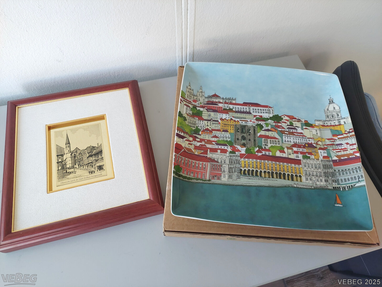 1 Bild, Motiv Stadtansicht Heiligenstadt, im Rahmen, ca. 20 x 20 cm;