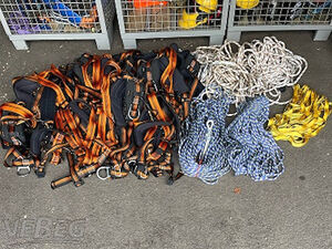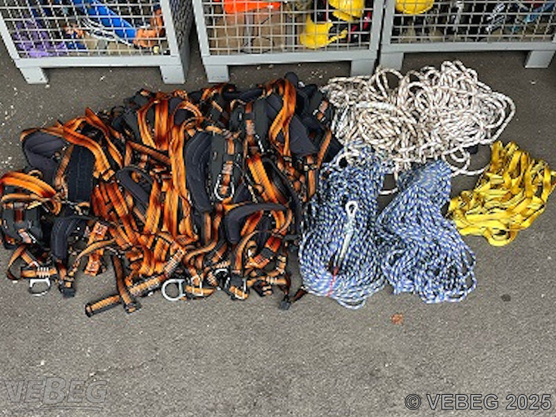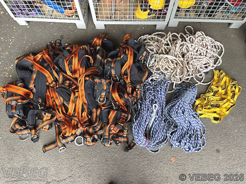 16 Auffanggurte Skylotec; 2 Kernmantelseile 60 m; 3 Sicherungsseile 30 m, 8 Bandschlingen;