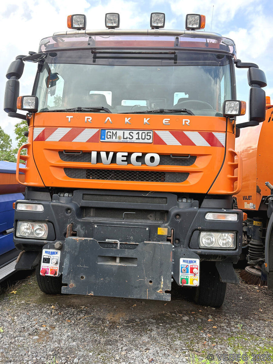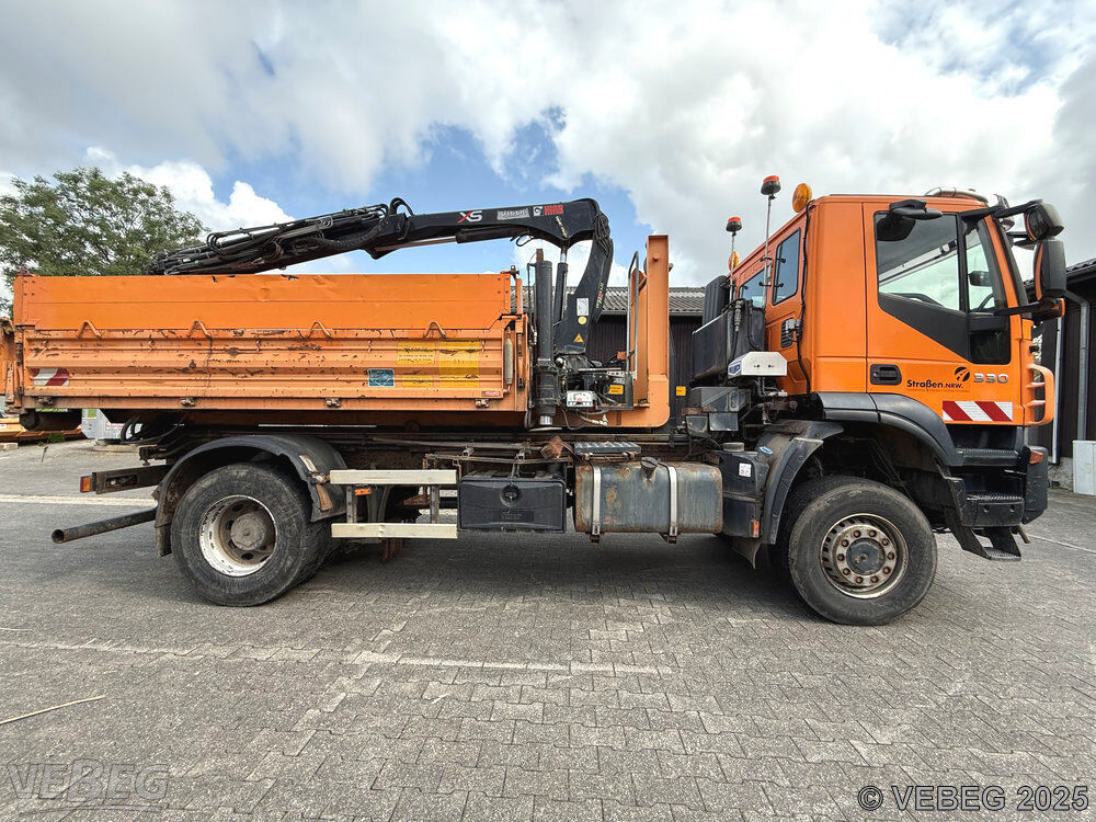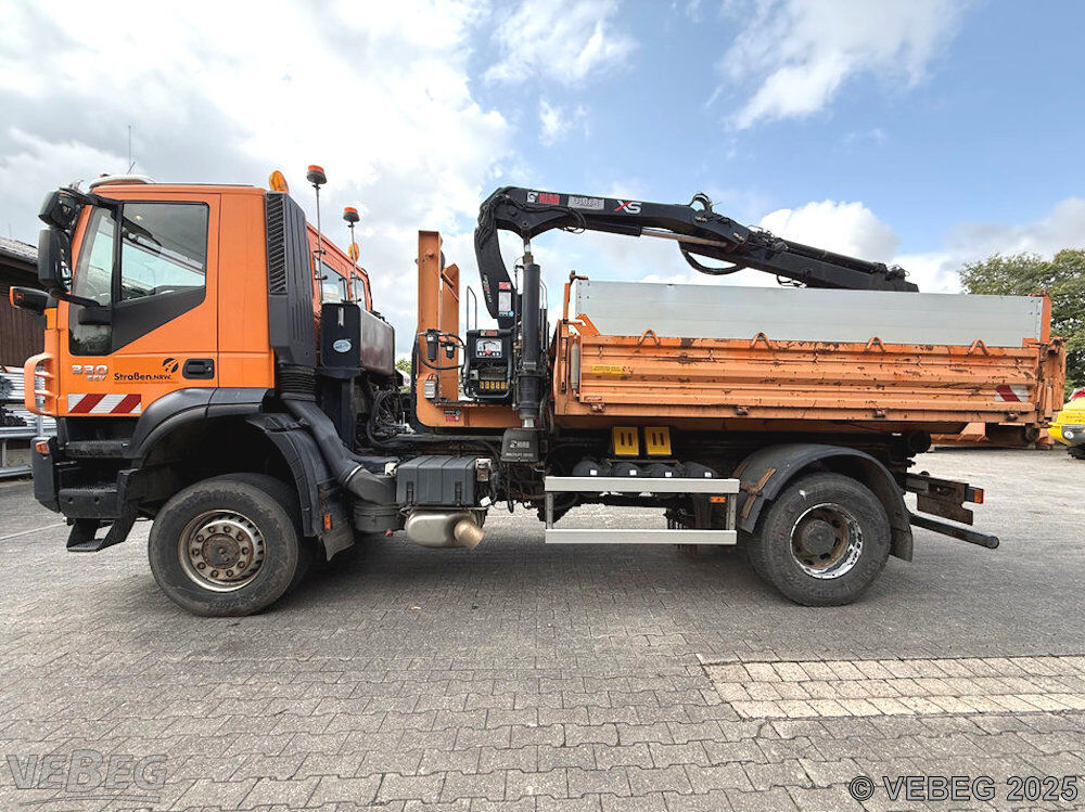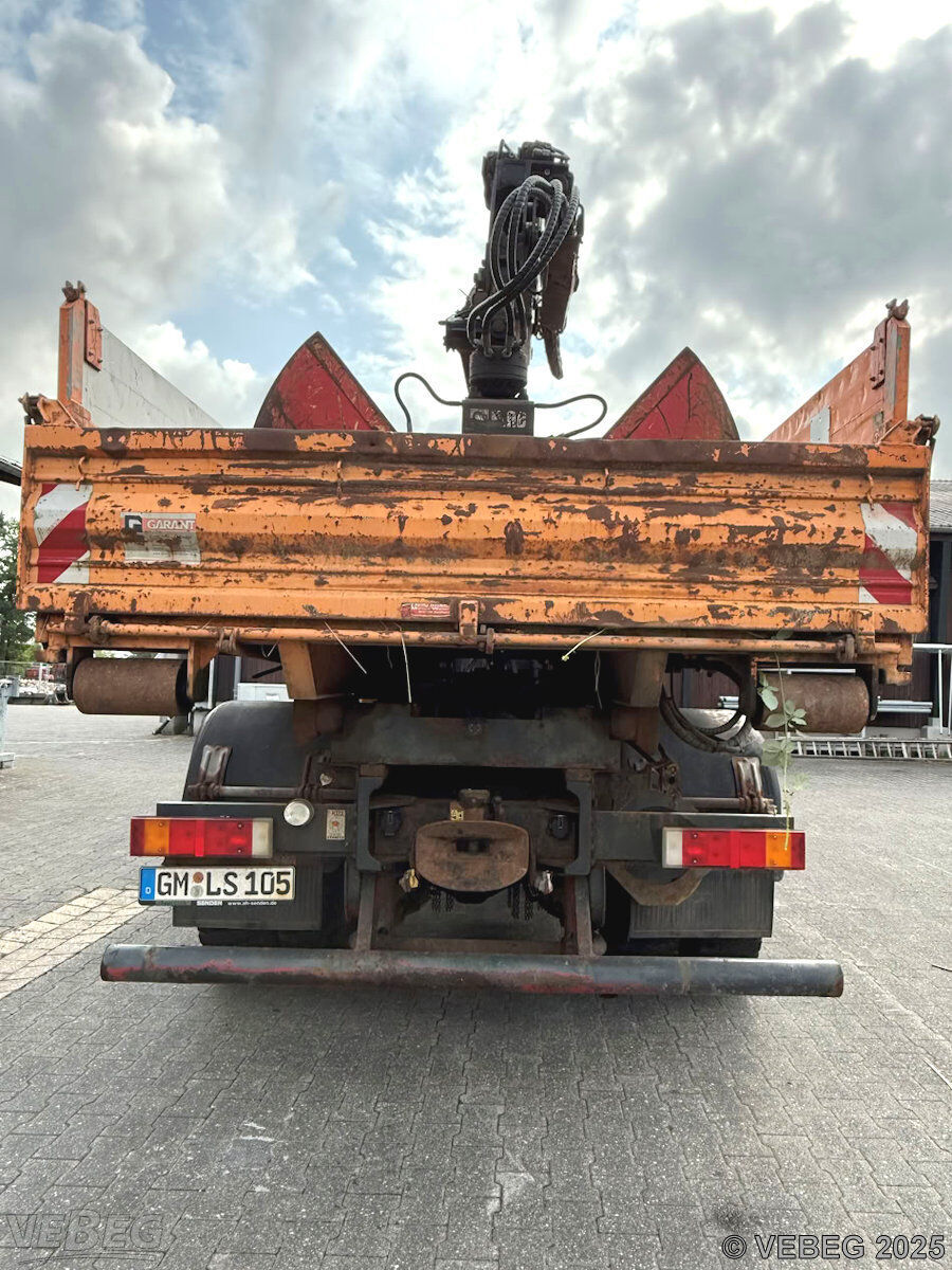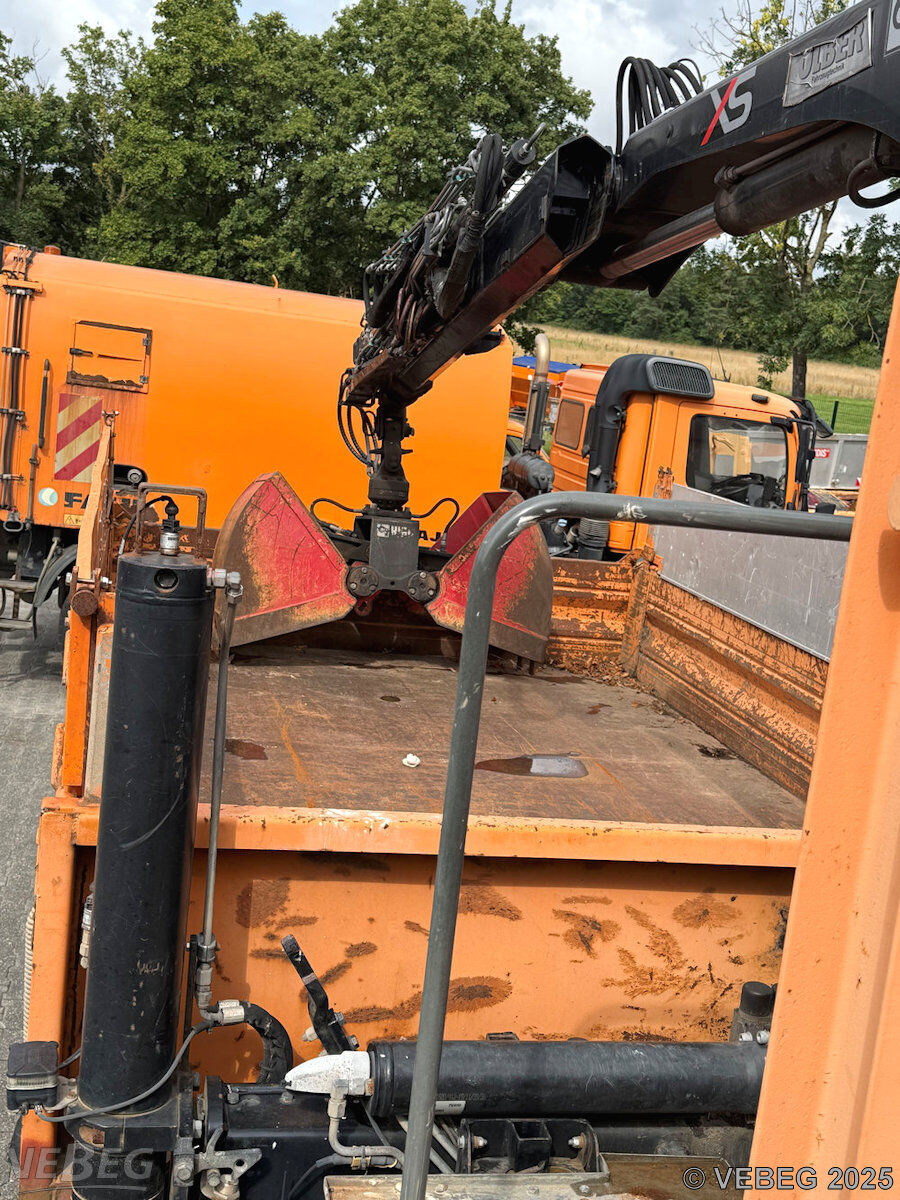 Motorleistung 243 kW, EEV, ca. 6.291 Betriebsstunden; Ladekran Hiab XS mit 1 Zweischalengreifer, Kommunalhydraulik, Frontanbauplatte, Unterwurfketten, AHK (festgesetzt); zusätzlich: 1 Aufsatzstreuer (reparaturbedürftig: Hydraulikschläuche porös, Streuteller verbogen), 1 Schneepflug (Anfahrschäden), Bedienpult für Kran und Schneepflug;