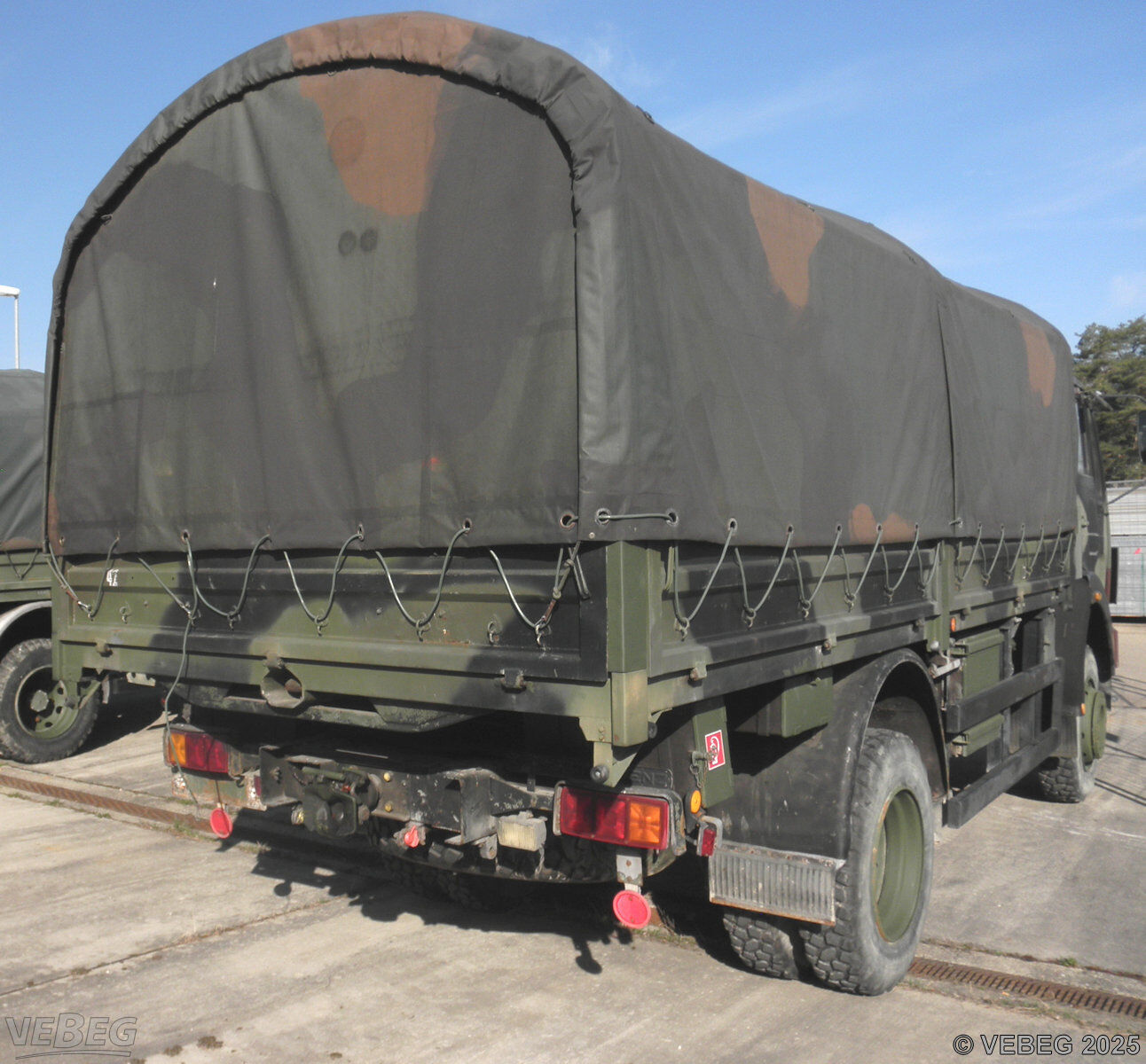BemerkungenTermine für Besichtigung oder Abholung sind mit der zuständigen Lagerortdienststelle verpflichtend vorab per Telefon /oder E-Mail zu vereinbaren.Ausfuhrgenehmigungspflichtig [Info] . Die Rechnungsstellung erfolgt zuzüglich der gesetzlichen Umsatzsteuer. GebotsbasisStückBitte beachten Sie auch die Hinweise und Bedingungen im Vorspann zu dieser Ausschreibung: Die von der VEBEG angebotenen Fahrzeuge stammen aus Aussonderungen ihrer Auftraggeber. Einzelheiten zum Zustand der jeweiligen Fahrzeuge entnehmen Sie bitte den Lostexten. Zusätzlich verweisen wir ausdrücklich auf Abschnitte B und G unserer Allgemeinen Geschäftsbedingungen (AGB). Fahrzeuge die nach Einschätzung der VEBEG der Ausfuhrgenehmigungspflicht unterliegen, sind mit Verweis auf die Punkte E3 und E4 unserer AGB entsprechend gekennzeichnet. Zum Gebotspreis kommt die gesetzliche Umsatzsteuer hinzu. Die Differenzbesteuerung gemäß § 25a UStG wird nur angewendet, wenn dies ausdrücklich in der jeweiligen Ausschreibung angegeben ist. | Lagerort / StandortBundeswehrSanRgt 3 Rommel-Kaserne Auf dem Lerchenfeld 1 Tel.: 07348 980-0 Durchwahl: 7642 89160 Dornstadt |