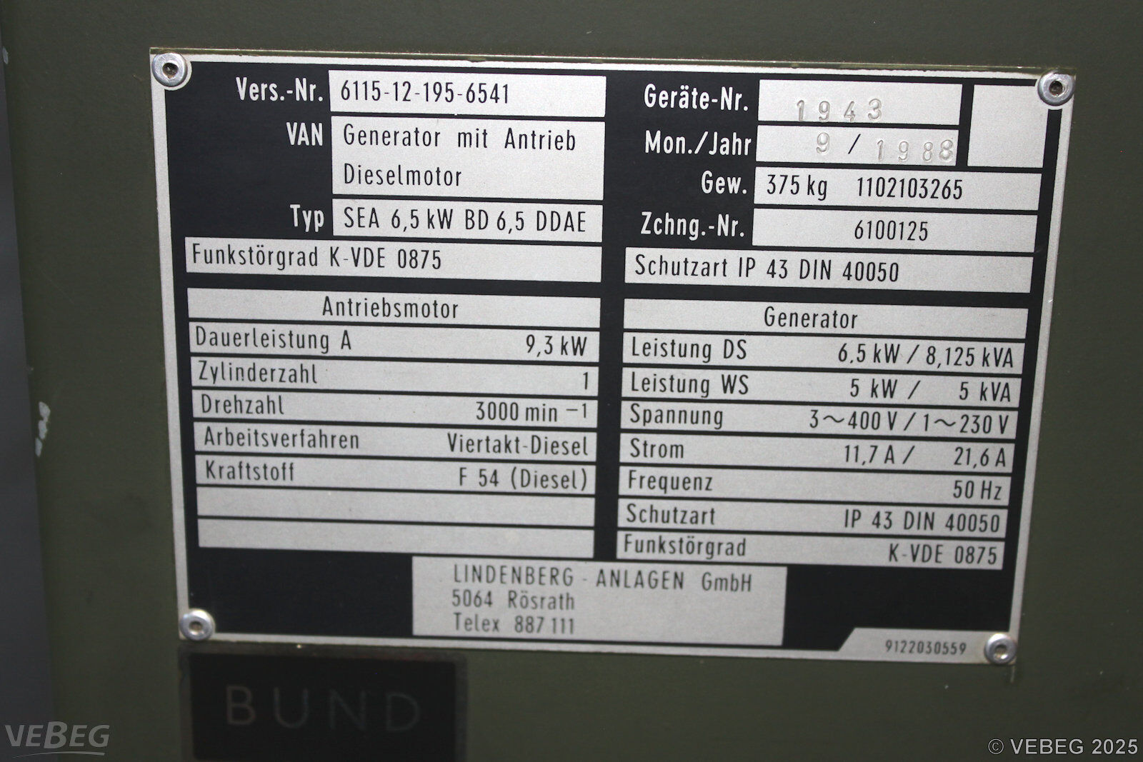 Die von der VEBEG angebotenen Waren stammen aus Aussonderungen ihrer Auftraggeber. Einzelheiten zum Zustand der jeweiligen Waren entnehmen Sie bitte den Lostexten. Insbesondere müssen technische Arbeitsmittel und Verbraucherprodukte i.S. des Geräte- und Produktsicherheitsgesetzes vor ihrer Verwendung instandgesetzt oder wiederaufgearbeitet werden. Zusätzlich verweisen wir ausdrücklich auf Abschnitte B und G unserer Allgemeinen Geschäftsbedingungen (AGB). Waren die nach Einschätzung der VEBEG der Ausfuhrgenehmigungspflicht unterliegen, sind mit Verweis auf die Punkte E3 und E4 unserer AGB entsprechend gekennzeichnet.Zum Gebotspreis kommt die gesetzliche Umsatzsteuer hinzu. Die Differenzbesteuerung gemäß § 25a UStG wird nur angewendet, wenn dies ausdrücklich in der jeweiligen Ausschreibung angegeben ist.