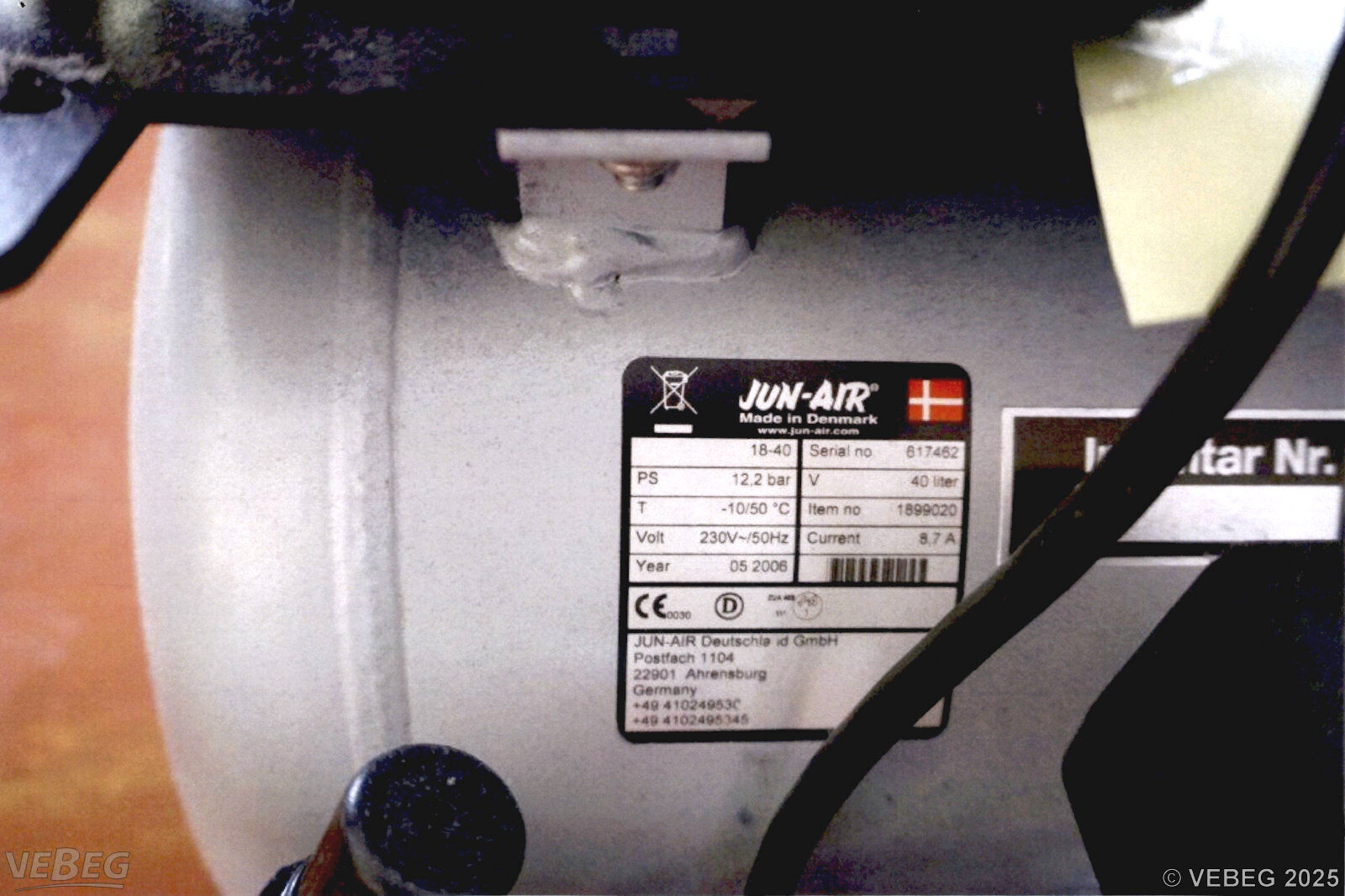 230 V, 50 Hz, 12,2 bar, Behältervolumen 40 l.