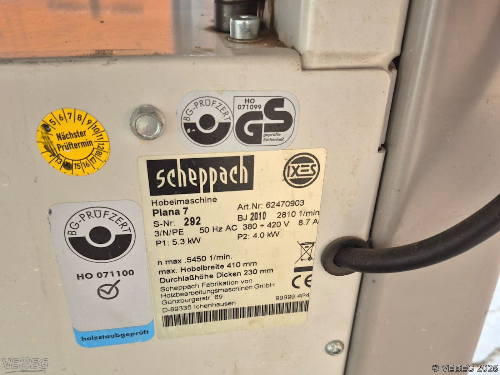 Hobelbreite max. 410 mm, Durchlasshöhe Dicken 230 mm;