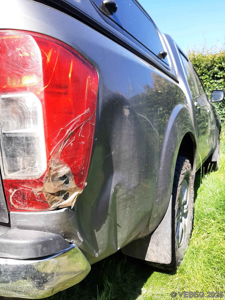 Motor- und Airbag Störungssymbole leuchten, Unfallschaden im Heckbereich, Stoßfänger vorn und Dachhimmel beschädigt, Fahrersitz verschlissen, rundum Kratzer und Dellen, Innenraum verschmutzt, Wartung fällig, Gebrauchsspuren, Korrosion, alters- und nutzungsbedingter Verschleiß, HU abgelaufen.