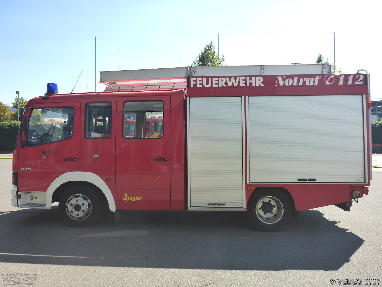 Motorleistung 110 kW; Doppelkabine, Kofferaufbau Ziegler mit Rollläden, Löschwasserbehälter 600 l, Einbaupumpe FP 8/8; ohne feuerwehrtechnische Beladung;