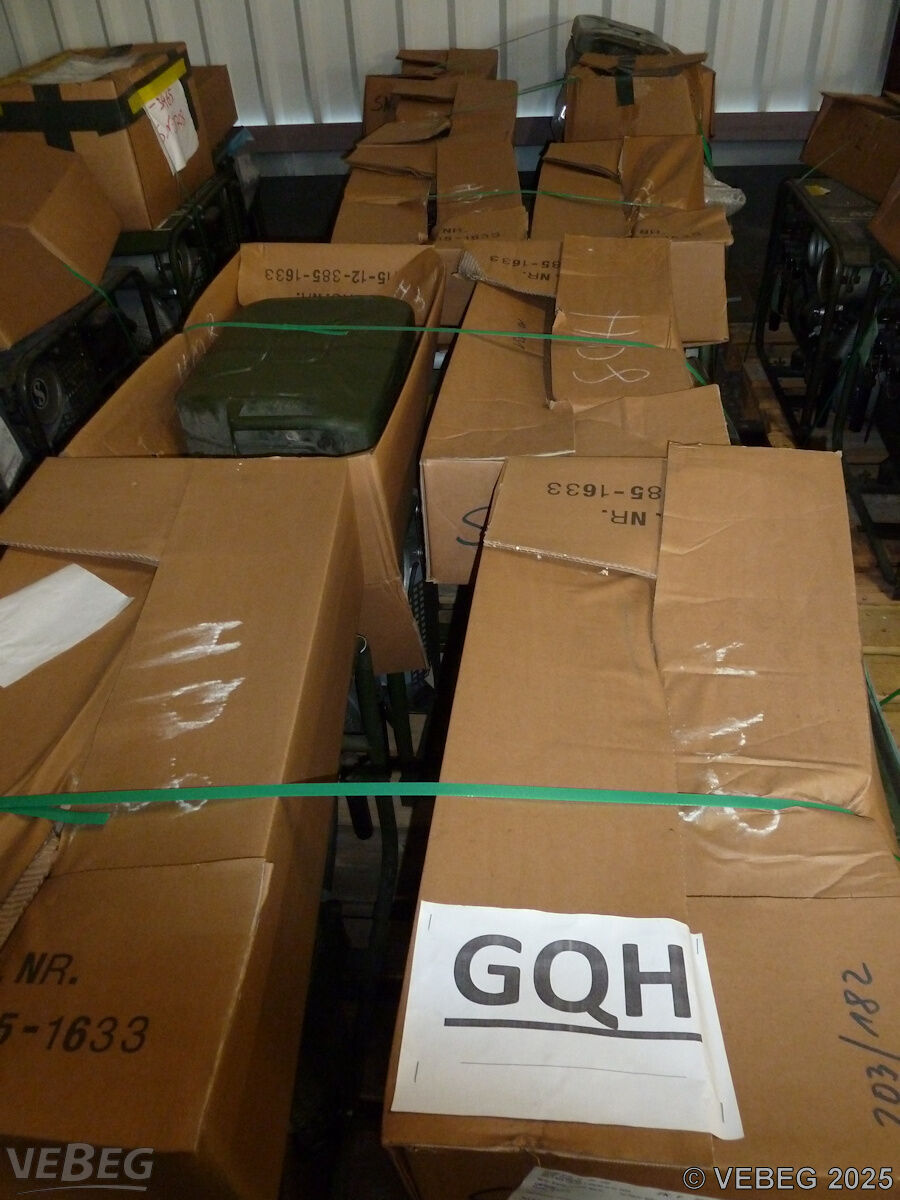 BemerkungenTermine für Besichtigung oder Abholung sind mit der zuständigen Lagerortdienststelle verpflichtend vorab per Telefon /oder E-Mail zu vereinbaren.Der Verkauf gebrauchter Elektro- und Elektronikgeräte im Sinne der Anlage 1 zu § 2 Abs. 1 ElektroG erfolgt ausschließlich an inländische Abnehmer mit deutscher Rechnungsadresse.Lagerhilfsmittel sind Eigentum der Dienststelle. Besichtigung und Abholung nur montags bis donnerstags in der Zeit von 8.00 bis 14.00 Uhr nach vorheriger telefonischer Vereinbarung. Die Rechnungsstellung erfolgt zuzüglich der gesetzlichen Umsatzsteuer. GebotsbasisPostenBitte beachten Sie auch die Hinweise und Bedingungen im Vorspann zu dieser Ausschreibung: Die von der VEBEG angebotenen Waren stammen aus Aussonderungen ihrer Auftraggeber. Einzelheiten zum Zustand der jeweiligen Waren entnehmen Sie bitte den Lostexten. Insbesondere müssen technische Arbeitsmittel und Verbraucherprodukte i.S. des Geräte- und Produktsicherheitsgesetzes vor ihrer Verwendung instandgesetzt oder wiederaufgearbeitet werden. Zusätzlich verweisen wir ausdrücklich auf Abschnitte B und G unserer Allgemeinen Geschäftsbedingungen (AGB). Waren die nach Einschätzung der VEBEG der Ausfuhrgenehmigungspflicht unterliegen, sind mit Verweis auf die Punkte E3 und E4 unserer AGB entsprechend gekennzeichnet.Zum Gebotspreis kommt die gesetzliche Umsatzsteuer hinzu. Die Differenzbesteuerung gemäß § 25a UStG wird nur angewendet, wenn dies ausdrücklich in der jeweiligen Ausschreibung angegeben ist. | Lagerort / StandortBundeswehrdepot OstMateriallager Waren Lagerbereich-Verwertung Platz des Friedens 15 Tel.: 03991 189-2120/2130 17192 Warenshof |
