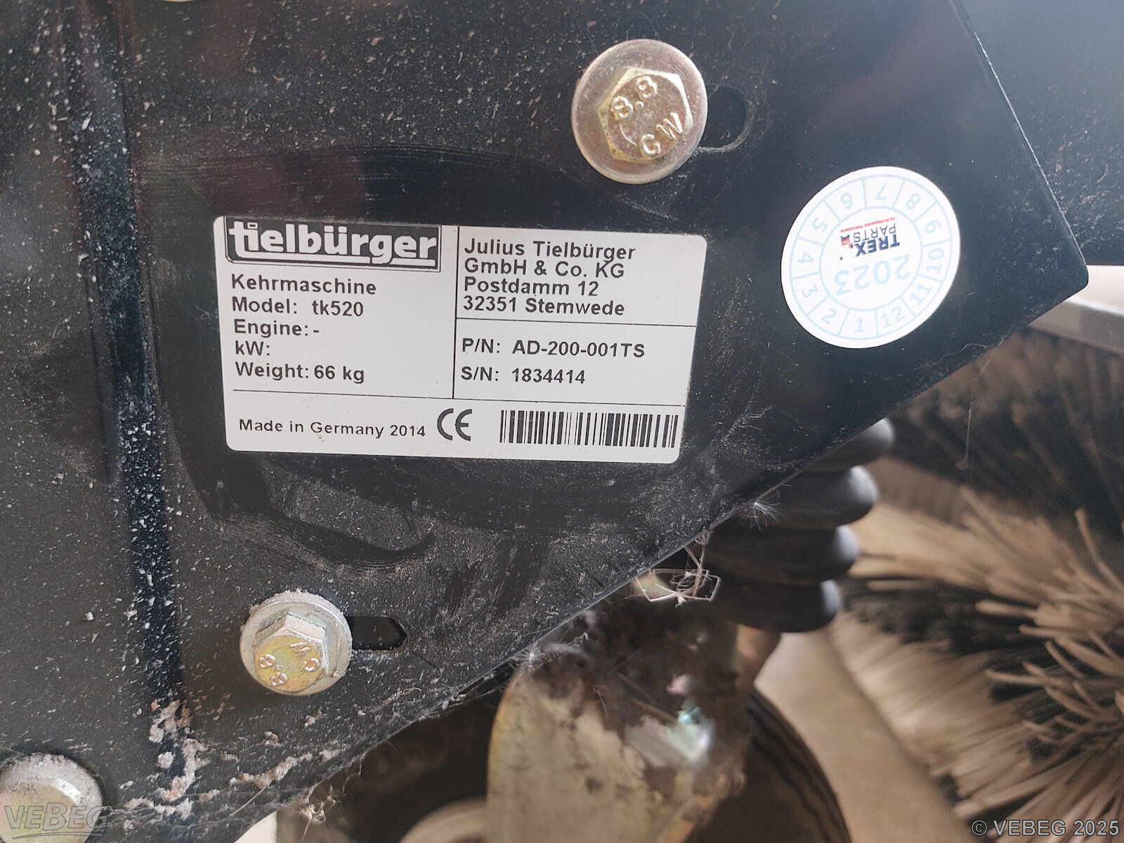 1 Anbau-Kehrmaschine Tielbürger tk520, Baujahr 2014, S/N 1834414, Anbauplatte defekt.