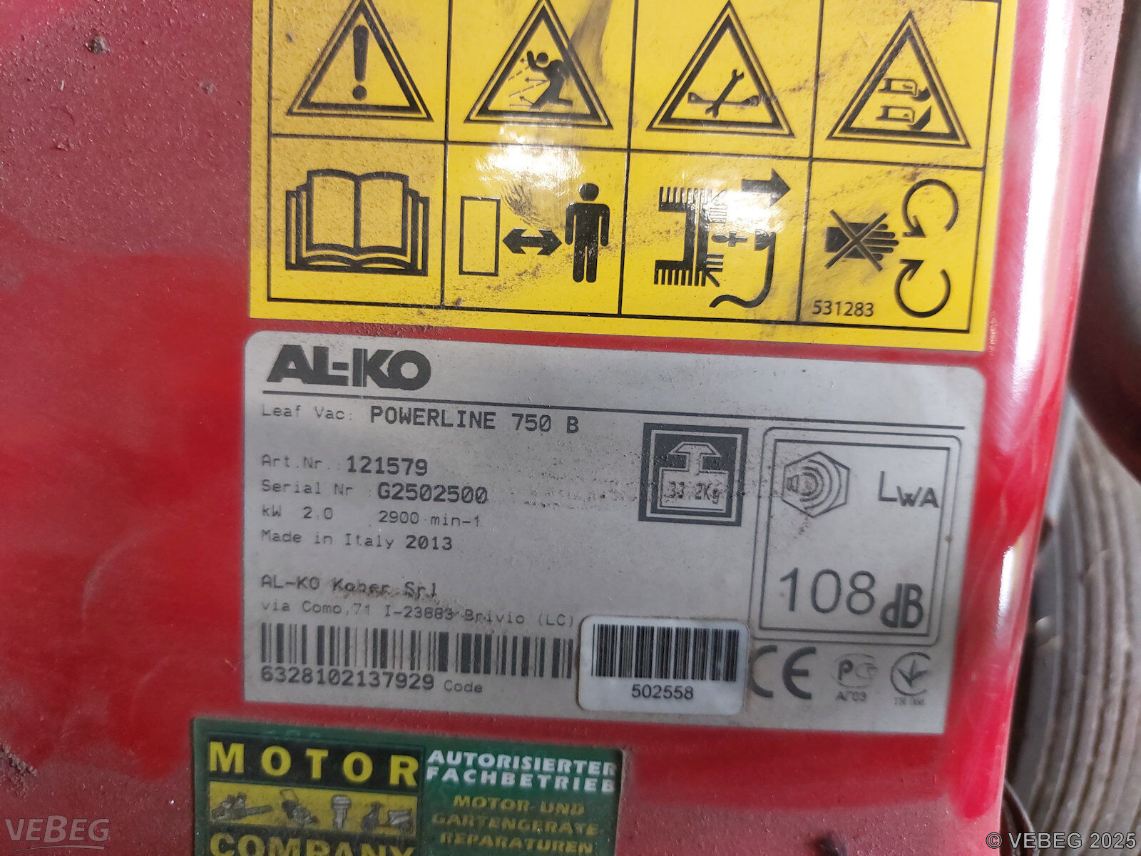 1 Laubsauger AL-KO Powerline 750 B, Baujahr 2013, S/N G2502500, Motor defekt;