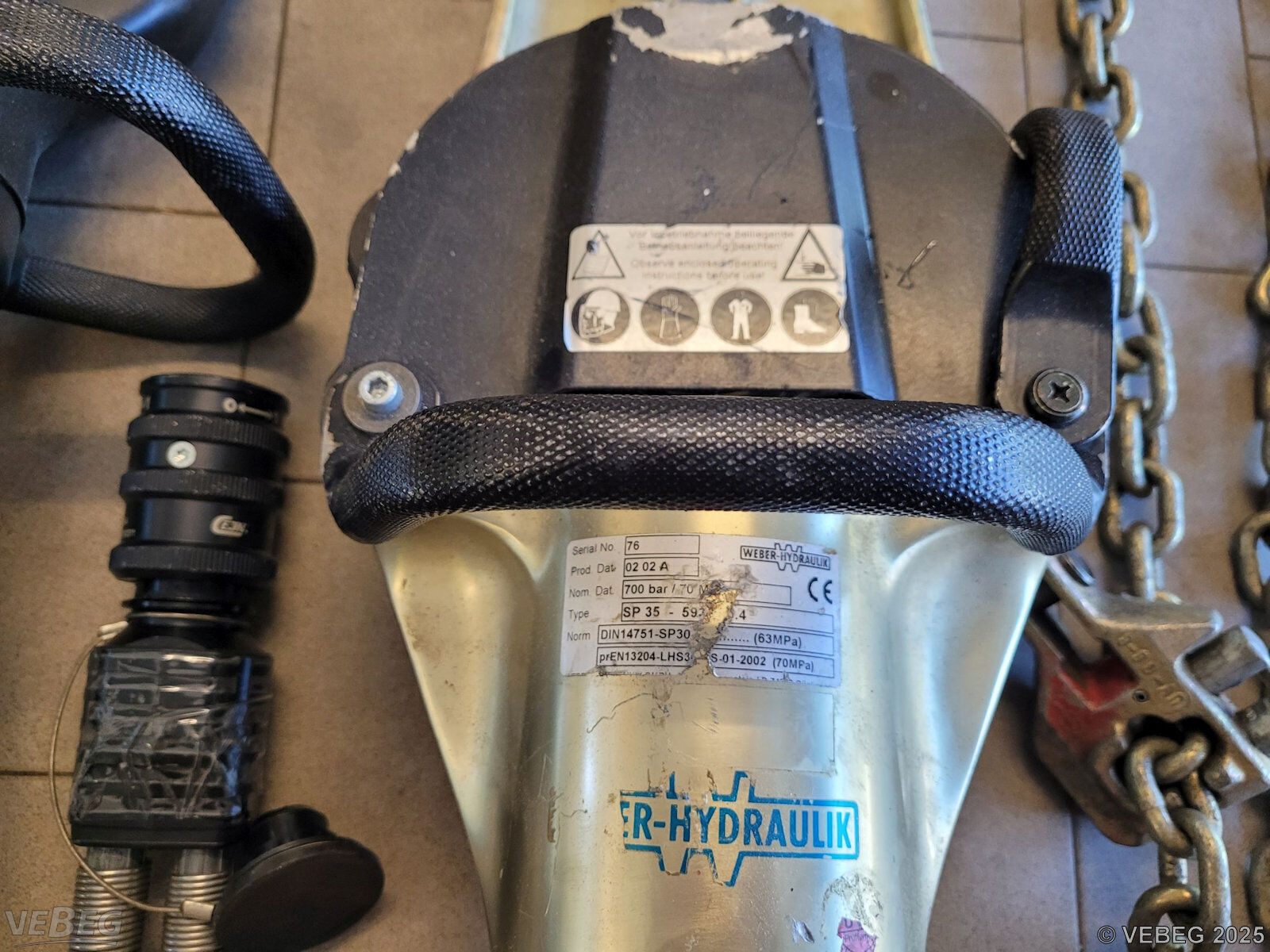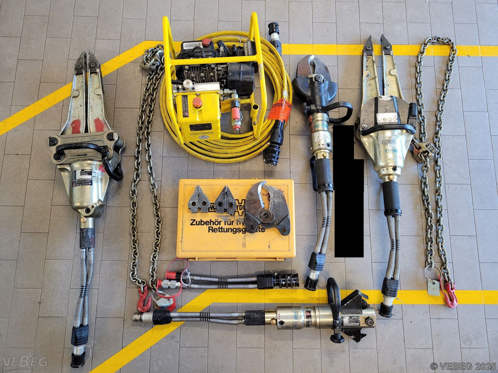 Schere S140EN und Rettungszylinder RZ-1, Druckschlauch 10 m, Spitzen und Ketten für Spreizer;