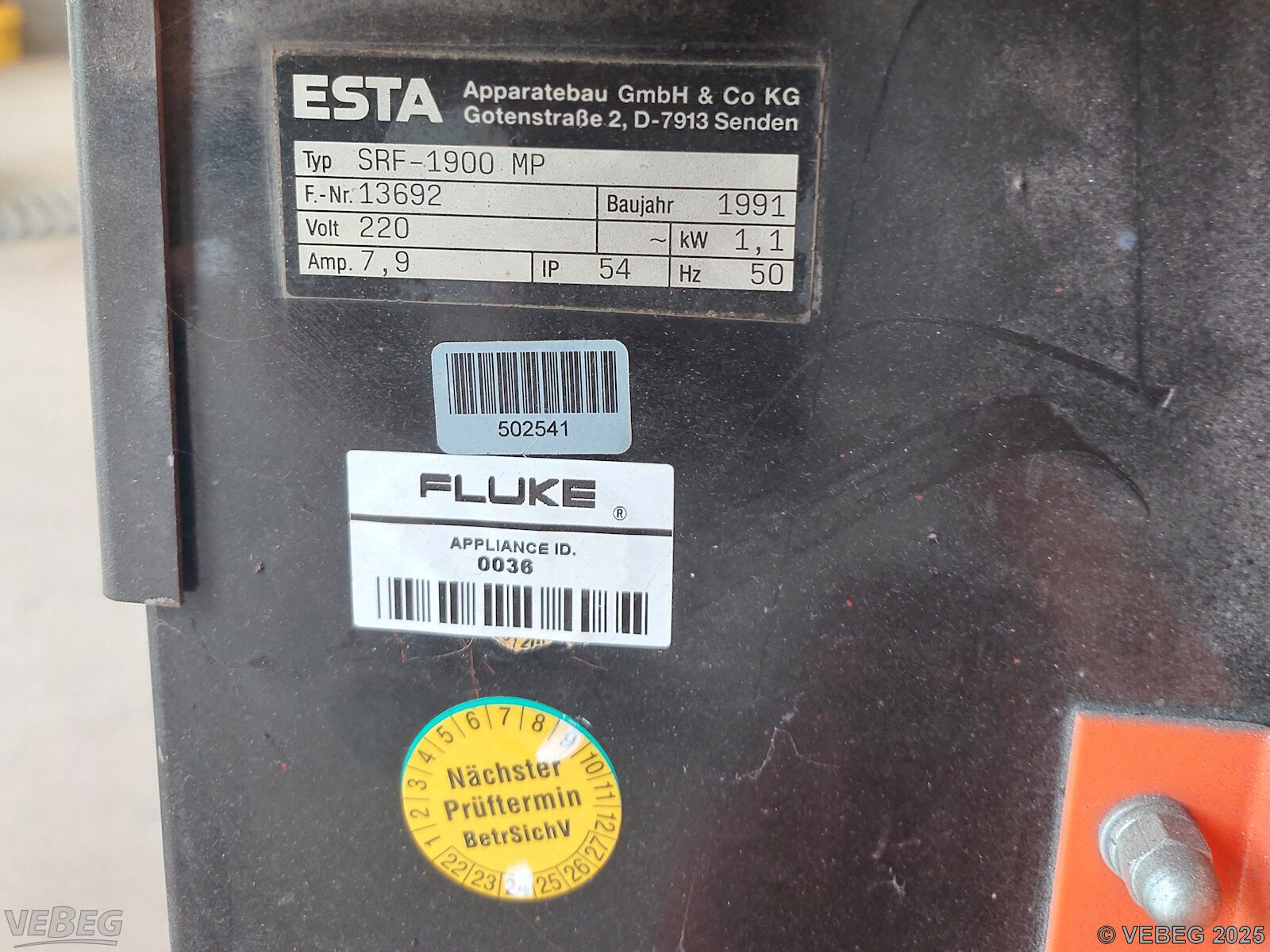 Baujahr 1991, S/N 13692; 220 V, 7,9 A, 1,1 kW; geringe Saugleistung, ohne 230 V-Anschlusskabel.
