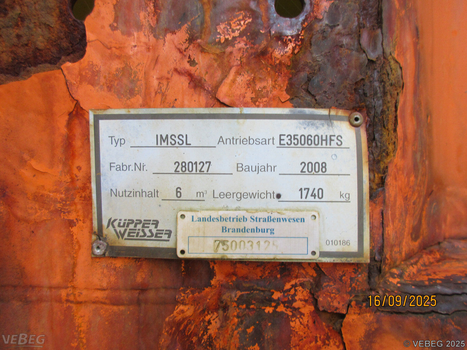 Baujahr 2008, S/N 280127; max. Inhalt 6 m3; ohne Bedienteil, Korrosionsschäden am ganzen Streuer.