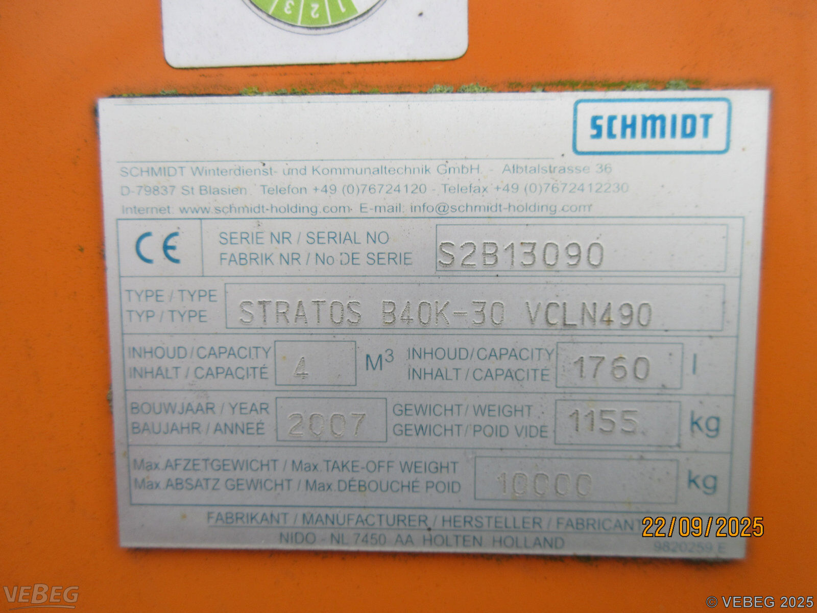 Baujahr 2007, S/N S2B13090; max. Inhalt 4m3, Getriebe zur Förderung defekt, ohne Bedienteil.