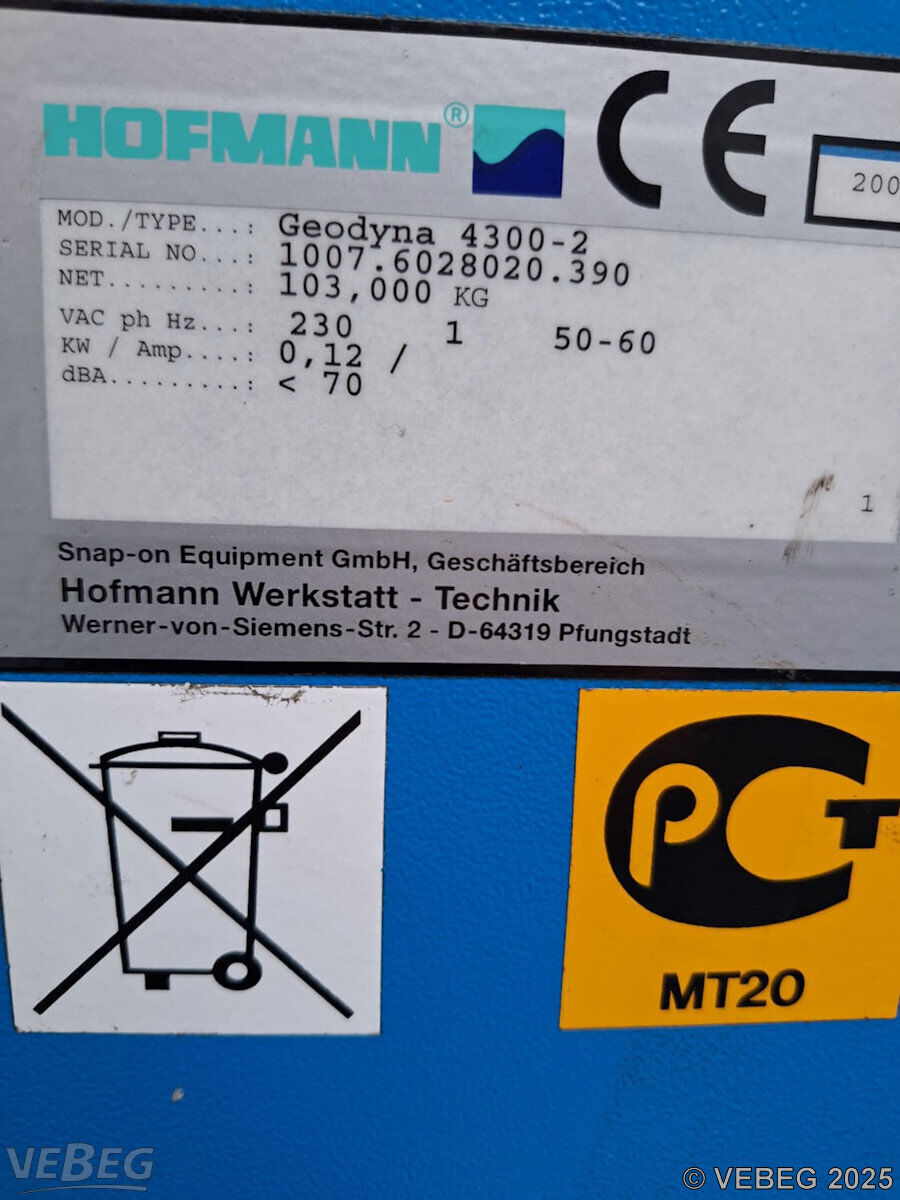 1 Radauswuchtmaschine Hofmann Geodyna 4300-2, Baujahr 2007, 230/250 V,