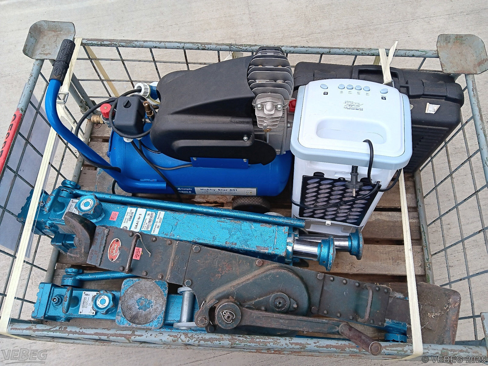1 Zahnstangenheber; 1 Gasheizgerät, mit Propangas betrieben;