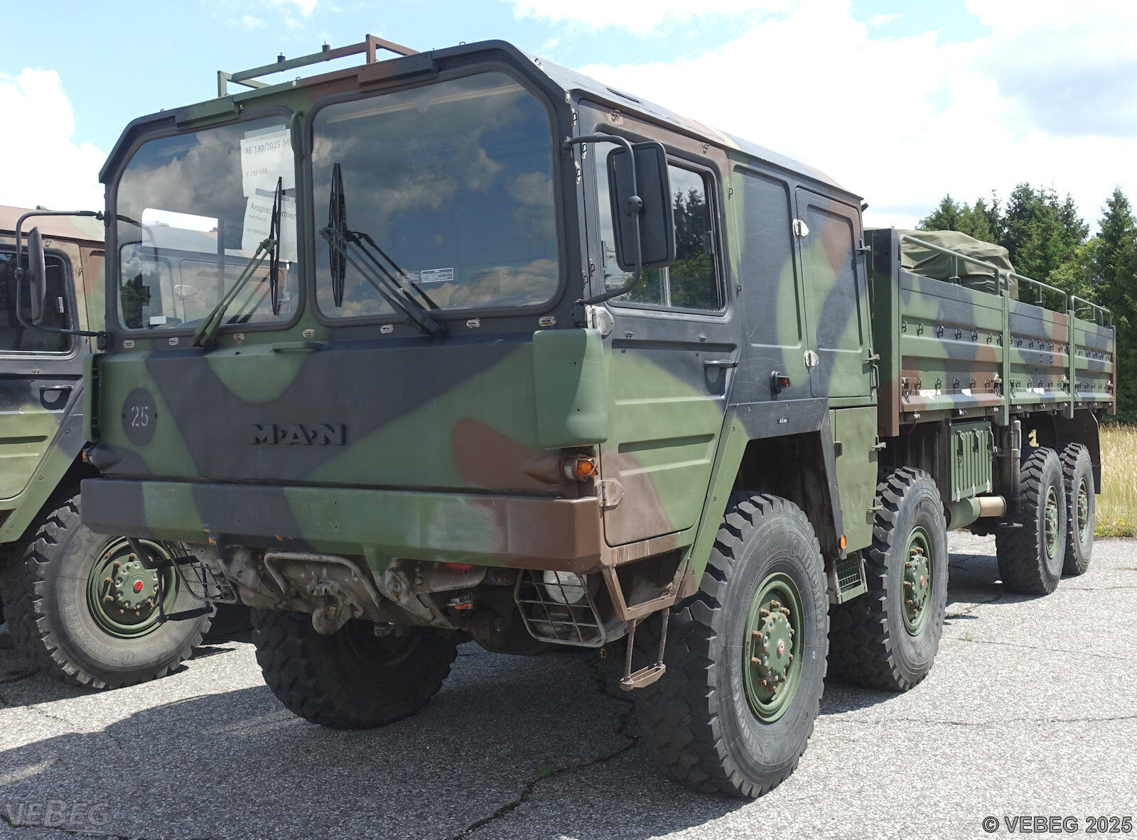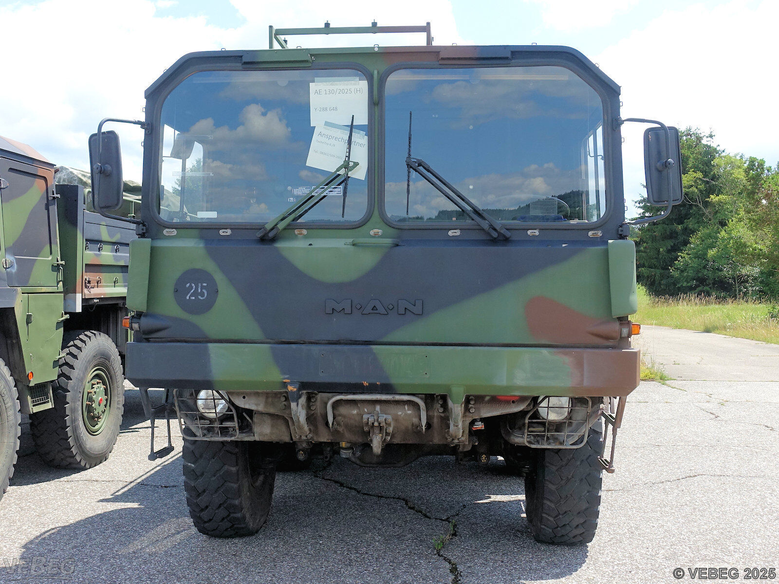BemerkungenTermine für Besichtigung oder Abholung sind mit der zuständigen Lagerortdienststelle verpflichtend vorab per Telefon /oder E-Mail zu vereinbaren.Ausfuhrgenehmigungspflichtig [Info] . Die Rechnungsstellung erfolgt zuzüglich der gesetzlichen Umsatzsteuer. GebotsbasisStückBitte beachten Sie auch die Hinweise und Bedingungen im Vorspann zu dieser Ausschreibung: Die von der VEBEG angebotenen Fahrzeuge stammen aus Aussonderungen ihrer Auftraggeber. Einzelheiten zum Zustand der jeweiligen Fahrzeuge entnehmen Sie bitte den Lostexten. Zusätzlich verweisen wir ausdrücklich auf Abschnitte B und G unserer Allgemeinen Geschäftsbedingungen (AGB). Fahrzeuge die nach Einschätzung der VEBEG der Ausfuhrgenehmigungspflicht unterliegen, sind mit Verweis auf die Punkte E3 und E4 unserer AGB entsprechend gekennzeichnet. Zum Gebotspreis kommt die gesetzliche Umsatzsteuer hinzu. Die Differenzbesteuerung gemäß § 25a UStG wird nur angewendet, wenn dies ausdrücklich in der jeweiligen Ausschreibung angegeben ist. | Lagerort / StandortBundeswehr-Dienstleistungs-zentrum Kaufbeuren FM 9 Fliegerhorst Apfeltranger Straße 15 Tel.: 08341 92-0 Durchwahl: 4136 oder 4139 87600 Kaufbeuren |