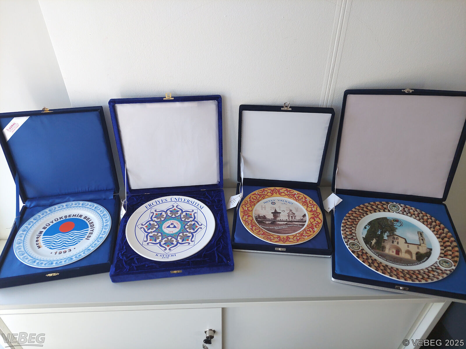 1 Porzellanteller, Türkei, Motiv Erciyes Universität, handbemalt, Durchmesser ca. 26 cm;