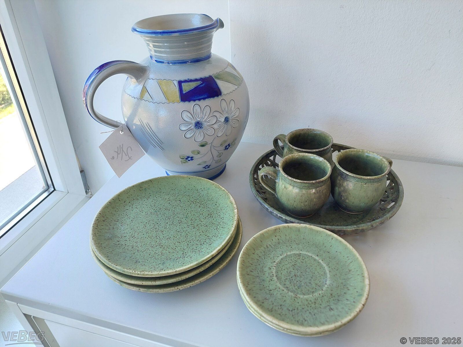 1 Steingutservice, für 3 Personen, Tasse, Unterteller und Teller, grün;