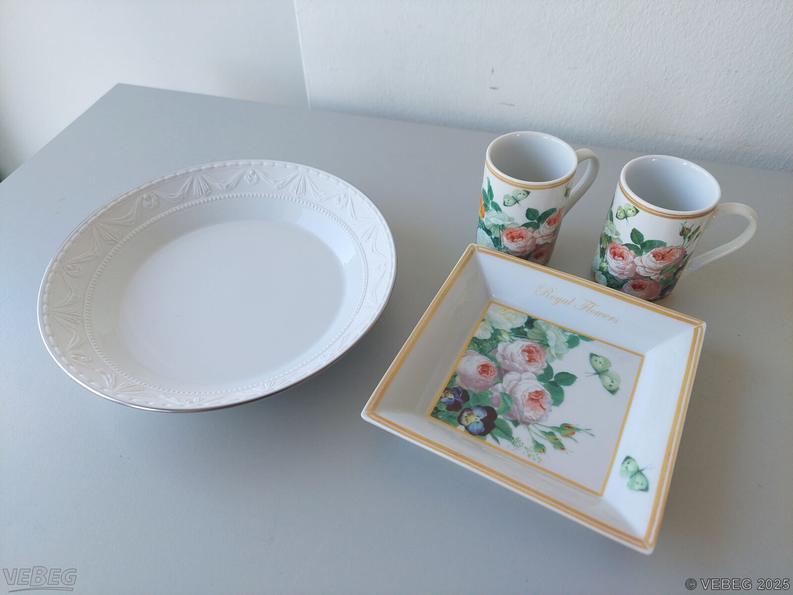 2 Mokkatassen mit Tablett, Design Royal Flowers, Höhe Tassen ca. 7 cm;