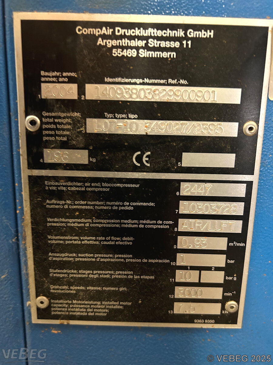 Luftkompressor CompAir L07-10 u. a.