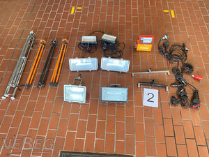 verschiedenen Halogenstrahlern; Stativen; Kabeln;