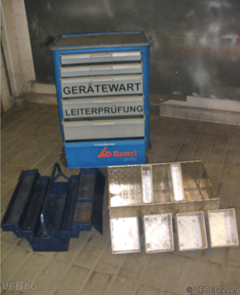 sowie 1 Metall-Werkzeugkiste, 7 Metallkisten.
