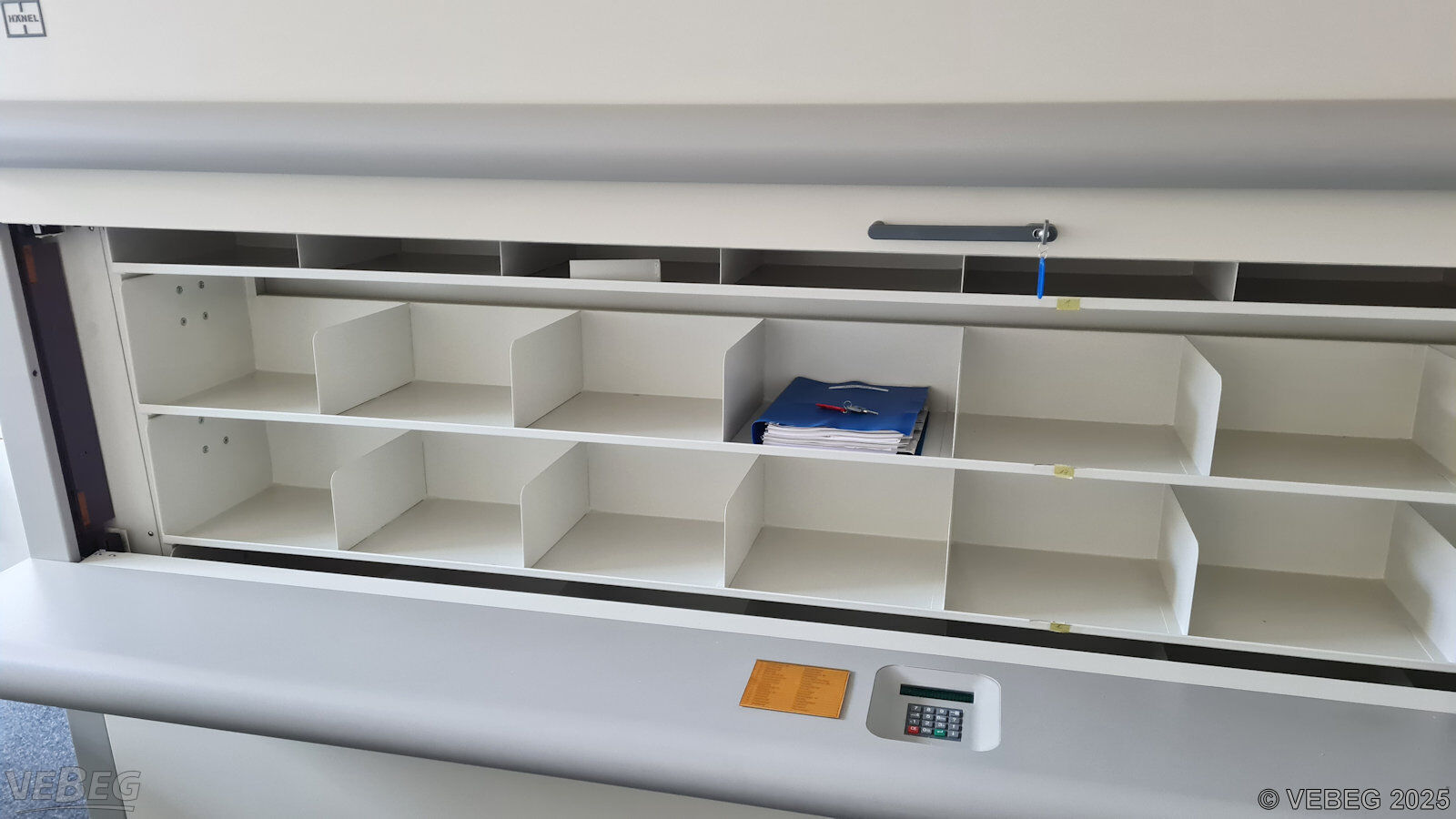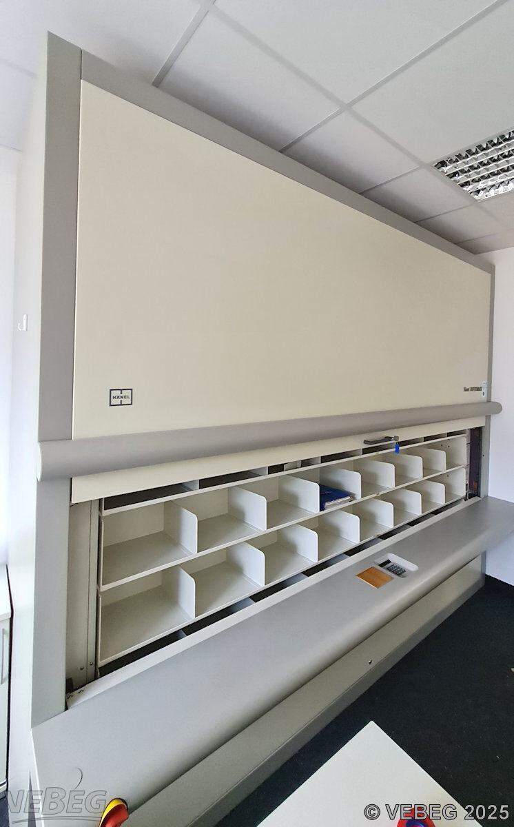 1,1/81,5 kW, Tablare: 17 Stück mit je 7 festen Unterteilungen, Fassungsvermögen: 48,53 Laufmeter,
