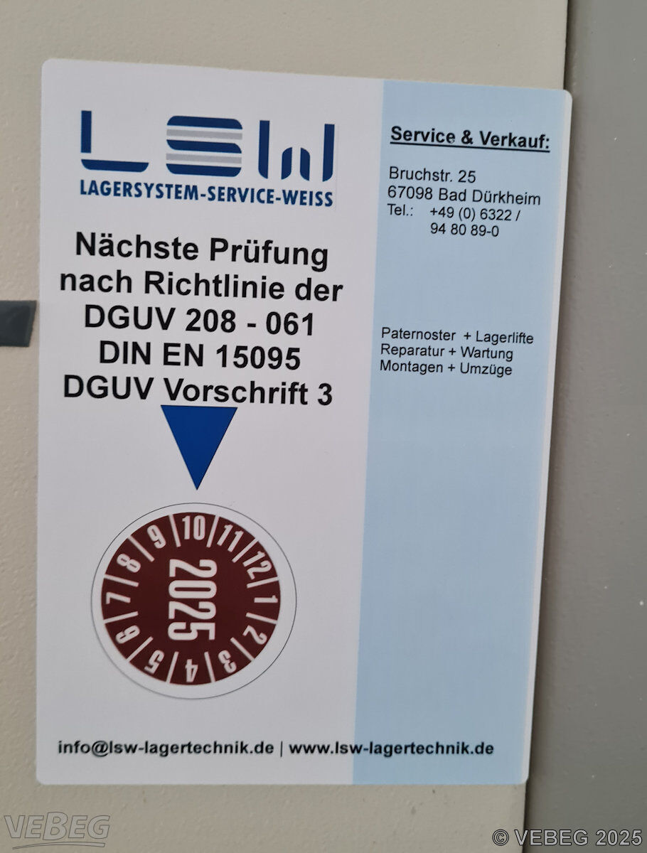 max. Tablar-/Gesamtbeladung: 150/2.550 kg, Steuerung über Mikroprozessorensteuerung MB O A-ZDR;