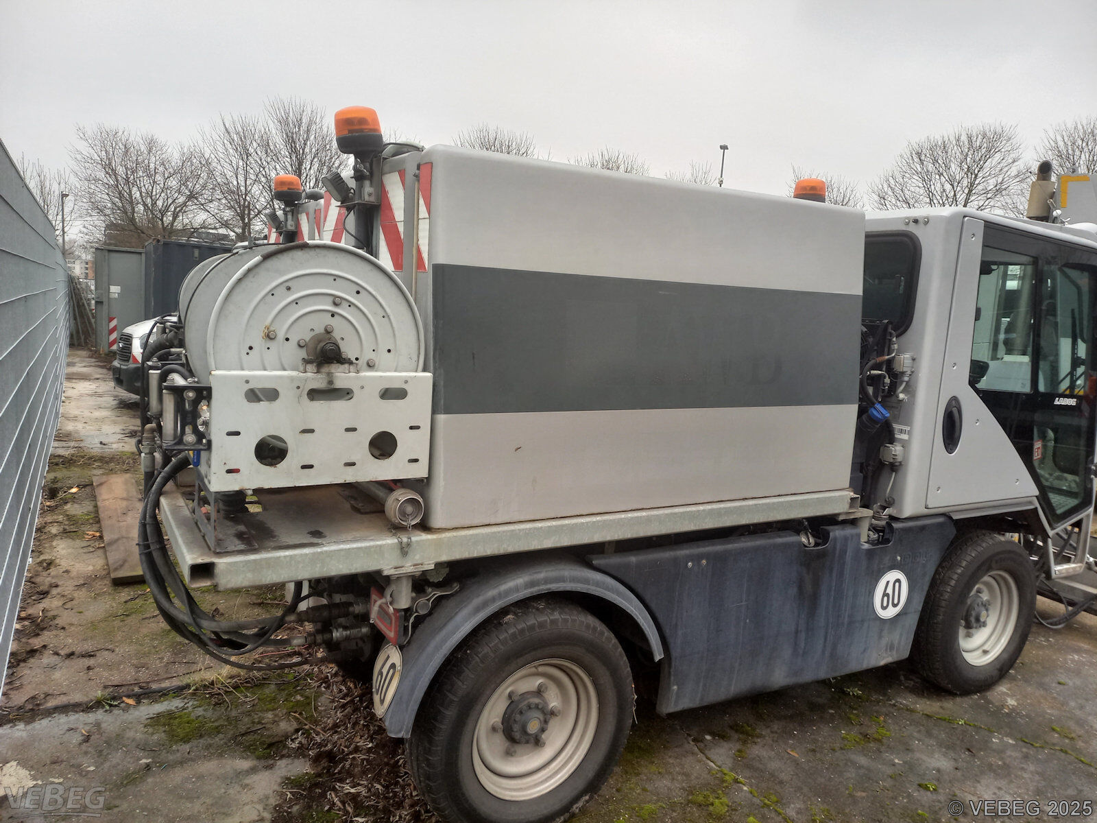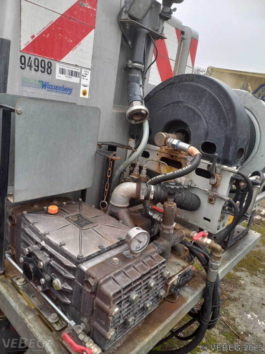 Motorleistung 84 kW; mit verlastetem Wasserfass und Schwemmbalken;