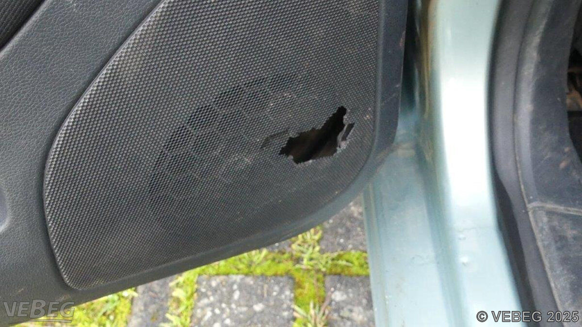 Stoßfänger vorn und Kotflügel rechts eingedrückt, Tür hinter rechts beschädigt, Kratzer, Dellen, Lackschäden, Türverkleidung vorn links gebrochen, Batterie tiefentladen, Gebrauchsspuren, Korrosion, alters- und nutzungsbedingter Verschleiß, HU abgelaufen.