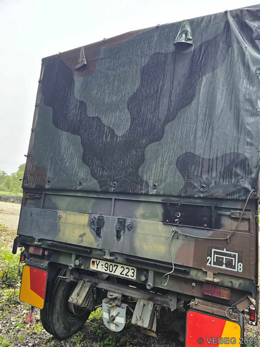 BemerkungenTermine für Besichtigung oder Abholung sind mit der zuständigen Lagerortdienststelle verpflichtend vorab per Telefon /oder E-Mail zu vereinbaren.Telefonische Voranmeldung ist unbedingt erforderlich. Der Anhänger steht in 85053 Ingolstadt, Mailinger Spitz. Ausfuhrgenehmigungspflichtig [Info] . Die Rechnungsstellung erfolgt zuzüglich der gesetzlichen Umsatzsteuer. GebotsbasisStückBitte beachten Sie auch die Hinweise und Bedingungen im Vorspann zu dieser Ausschreibung: Die von der VEBEG angebotenen Fahrzeuge stammen aus Aussonderungen ihrer Auftraggeber. Einzelheiten zum Zustand der jeweiligen Fahrzeuge entnehmen Sie bitte den Lostexten. Zusätzlich verweisen wir ausdrücklich auf Abschnitte B und G unserer Allgemeinen Geschäftsbedingungen (AGB). Fahrzeuge die nach Einschätzung der VEBEG der Ausfuhrgenehmigungspflicht unterliegen, sind mit Verweis auf die Punkte E3 und E4 unserer AGB entsprechend gekennzeichnet. Zum Gebotspreis kommt die gesetzliche Umsatzsteuer hinzu. Die Differenzbesteuerung gemäß § 25a UStG wird nur angewendet, wenn dies ausdrücklich in der jeweiligen Ausschreibung angegeben ist. | Lagerort / StandortBundeswehrPzPiBtl 8 - S4 Pionierkaserne auf der Schanz Manchinger Straße 1 Tel.: 0841 88660-0 Durchwahl: 8044 85053 Ingolstadt |