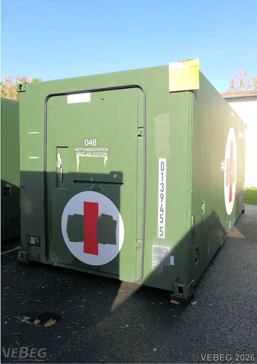 BemerkungenTermine für Besichtigung oder Abholung sind mit der zuständigen Lagerortdienststelle verpflichtend vorab per Telefon /oder E-Mail zu vereinbaren.Lagerhilfsmittel sind Eigentum der Dienststelle. Die Rechnungsstellung erfolgt zuzüglich der gesetzlichen Umsatzsteuer. GebotsbasisStückBitte beachten Sie auch die Hinweise und Bedingungen im Vorspann zu dieser Ausschreibung: Die von der VEBEG angebotenen Waren stammen aus Aussonderungen ihrer Auftraggeber. Einzelheiten zum Zustand der jeweiligen Waren entnehmen Sie bitte den Lostexten. Insbesondere müssen technische Arbeitsmittel und Verbraucherprodukte i.S. des Geräte- und Produktsicherheitsgesetzes vor ihrer Verwendung instandgesetzt oder wiederaufgearbeitet werden. Zusätzlich verweisen wir ausdrücklich auf Abschnitte B und G unserer Allgemeinen Geschäftsbedingungen (AGB). Waren die nach Einschätzung der VEBEG der Ausfuhrgenehmigungspflicht unterliegen, sind mit Verweis auf die Punkte E3 und E4 unserer AGB entsprechend gekennzeichnet.Zum Gebotspreis kommt die gesetzliche Umsatzsteuer hinzu. Die Differenzbesteuerung gemäß § 25a UStG wird nur angewendet, wenn dies ausdrücklich in der jeweiligen Ausschreibung angegeben ist. | Lagerort / StandortBundeswehrSanMatLager Krugau Spreewald-Kaserne Krugauer Dorfstraße 84 Tel.: 035471 800-0 Herr Helmuth Durchwahl: 4104 15913 Märkische Heide |