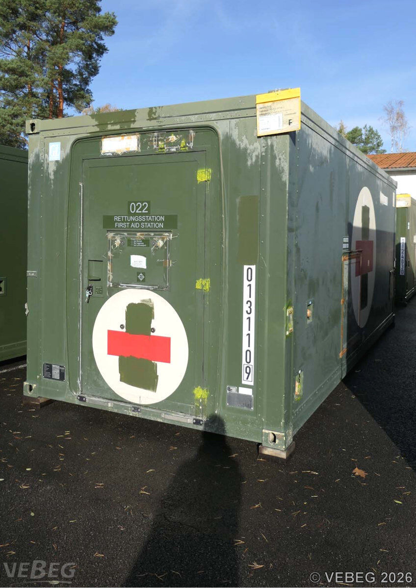 BemerkungenTermine für Besichtigung oder Abholung sind mit der zuständigen Lagerortdienststelle verpflichtend vorab per Telefon /oder E-Mail zu vereinbaren.Lagerhilfsmittel sind Eigentum der Dienststelle. Die Rechnungsstellung erfolgt zuzüglich der gesetzlichen Umsatzsteuer. GebotsbasisStückBitte beachten Sie auch die Hinweise und Bedingungen im Vorspann zu dieser Ausschreibung: Die von der VEBEG angebotenen Waren stammen aus Aussonderungen ihrer Auftraggeber. Einzelheiten zum Zustand der jeweiligen Waren entnehmen Sie bitte den Lostexten. Insbesondere müssen technische Arbeitsmittel und Verbraucherprodukte i.S. des Geräte- und Produktsicherheitsgesetzes vor ihrer Verwendung instandgesetzt oder wiederaufgearbeitet werden. Zusätzlich verweisen wir ausdrücklich auf Abschnitte B und G unserer Allgemeinen Geschäftsbedingungen (AGB). Waren die nach Einschätzung der VEBEG der Ausfuhrgenehmigungspflicht unterliegen, sind mit Verweis auf die Punkte E3 und E4 unserer AGB entsprechend gekennzeichnet.Zum Gebotspreis kommt die gesetzliche Umsatzsteuer hinzu. Die Differenzbesteuerung gemäß § 25a UStG wird nur angewendet, wenn dies ausdrücklich in der jeweiligen Ausschreibung angegeben ist. | Lagerort / StandortBundeswehrSanMatLager Krugau Spreewald-Kaserne Krugauer Dorfstraße 84 Tel.: 035471 800-0 Herr Helmuth Durchwahl: 4104 15913 Märkische Heide |