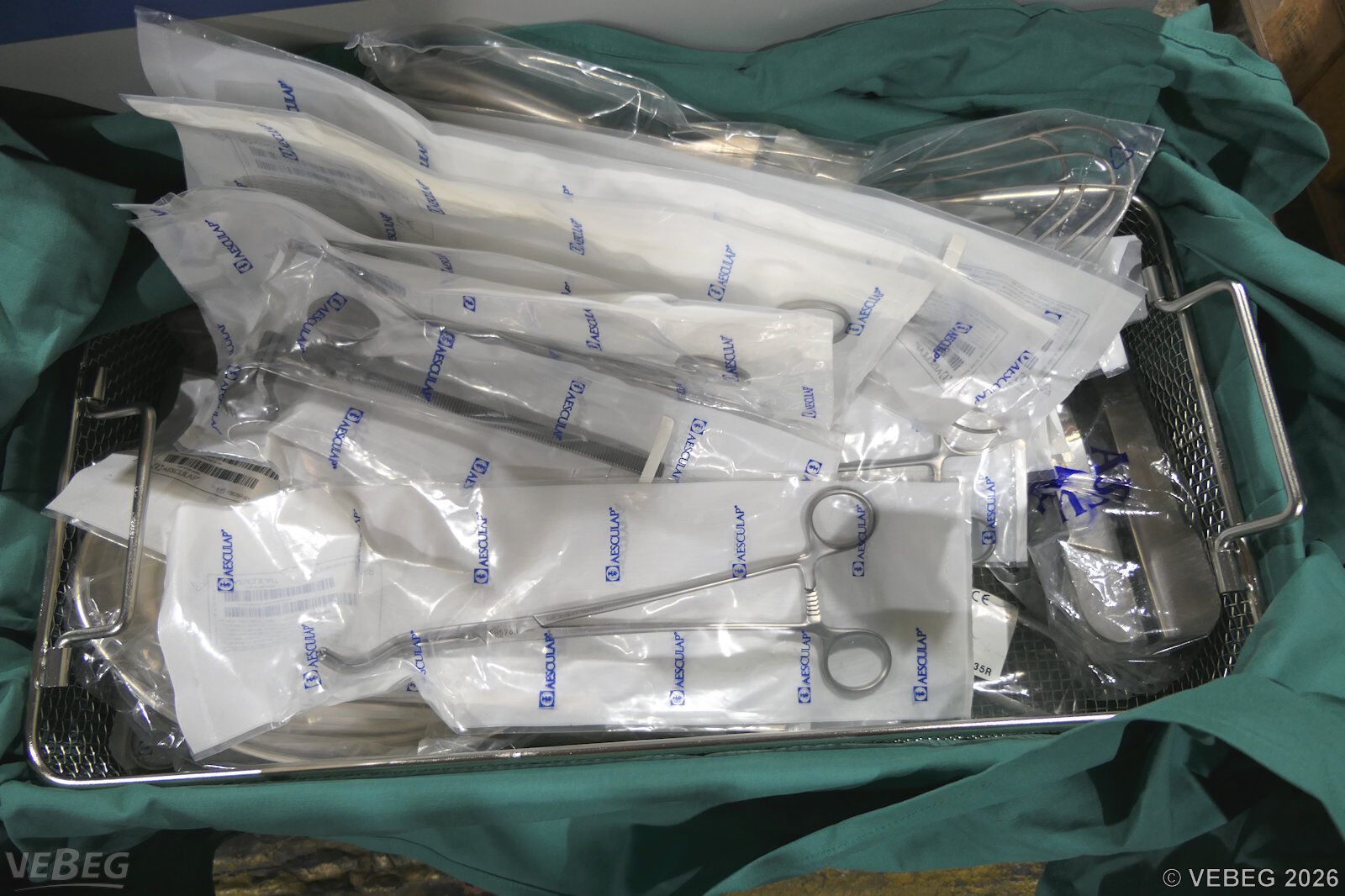 diverse Pinzetten, Klemmen, Zangen u. a., in Sterilgutbehälter; unvollständig, defekt.