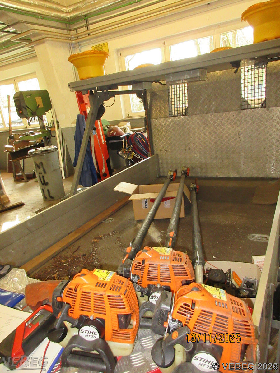 | BemerkungenTermine für Besichtigung oder Abholung sind mit der zuständigen Lagerortdienststelle verpflichtend vorab per Telefon /oder E-Mail zu vereinbaren.Die Rechnungsstellung erfolgt zuzüglich der gesetzlichen Umsatzsteuer. GebotsbasisPostenBitte beachten Sie auch die Hinweise und Bedingungen im Vorspann zu dieser Ausschreibung: Die von der VEBEG angebotenen Waren stammen aus Aussonderungen ihrer Auftraggeber. Einzelheiten zum Zustand der jeweiligen Waren entnehmen Sie bitte den Lostexten. Insbesondere müssen technische Arbeitsmittel und Verbraucherprodukte i.S. des Geräte- und Produktsicherheitsgesetzes vor ihrer Verwendung instandgesetzt oder wiederaufgearbeitet werden. Zusätzlich verweisen wir ausdrücklich auf Abschnitte B und G unserer Allgemeinen Geschäftsbedingungen (AGB). Waren die nach Einschätzung der VEBEG der Ausfuhrgenehmigungspflicht unterliegen, sind mit Verweis auf die Punkte E3 und E4 unserer AGB entsprechend gekennzeichnet.Zum Gebotspreis kommt die gesetzliche Umsatzsteuer hinzu. Die Differenzbesteuerung gemäß § 25a UStG wird nur angewendet, wenn dies ausdrücklich in der jeweiligen Ausschreibung angegeben ist. | Lagerort / StandortLB Straßenwesen/ NL SüdStraßenmeisterei Waldstadt Am Steinplatz 2 Tel.: 03342 249-2491 Herr Köpsch Durchwahl: 2492 LS-SM.Waldstadt@LS.Brandenburg.de 15806 Zossen | ||||||