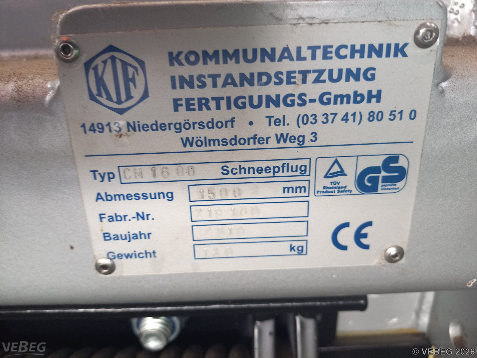 Schneepflug KIF CM 1600