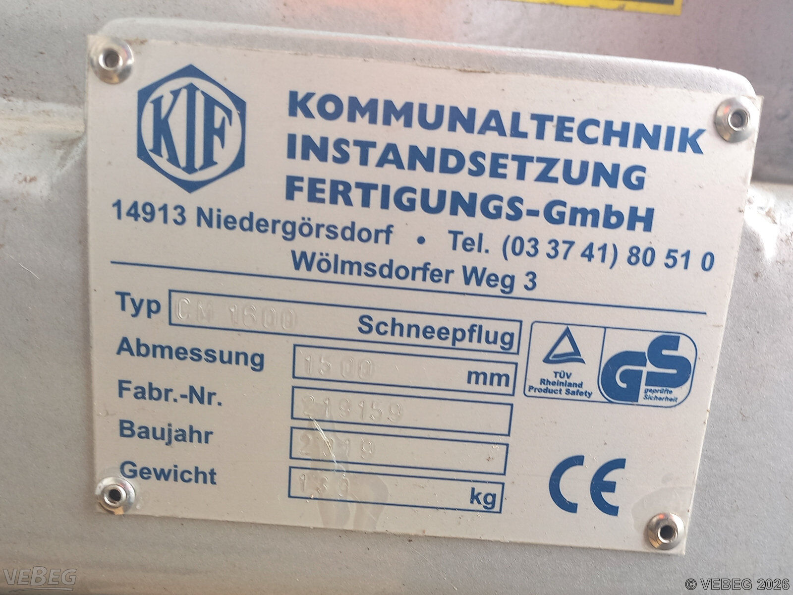 Schneepflug KIF CM 1600