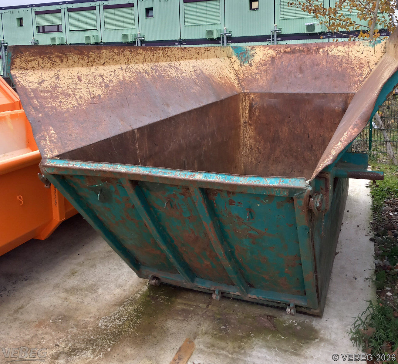 1 Hochcontainer, Baujahr 2004, Inhalt 14 m³, Nutzlast 6,7 t, Tragfähigkeit 8 t; 1 Trichtercontainer.