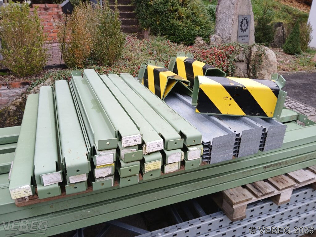 4 Stück Anfahrschutz; 45 Tiefenträger (Länge) 110 cm; diverse Blech-Einlegeböden; Baujahr 1993.