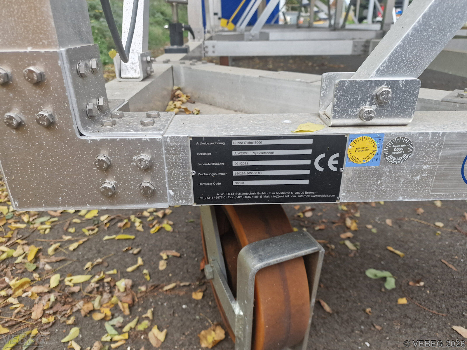 BemerkungenTermine für Besichtigung oder Abholung sind mit der zuständigen Lagerortdienststelle verpflichtend vorab per Telefon /oder E-Mail zu vereinbaren.Abbau, Abtransport und Säuberung des Standplatzes sind vom Käufer in Abstimmung mit der Abgabe-Dienststelle vorzunehmen. Die Rechnungsstellung erfolgt zuzüglich der gesetzlichen Umsatzsteuer. GebotsbasisStückBitte beachten Sie auch die Hinweise und Bedingungen im Vorspann zu dieser Ausschreibung: Die von der VEBEG angebotenen Waren stammen aus Aussonderungen ihrer Auftraggeber. Einzelheiten zum Zustand der jeweiligen Waren entnehmen Sie bitte den Lostexten. Insbesondere müssen technische Arbeitsmittel und Verbraucherprodukte i.S. des Geräte- und Produktsicherheitsgesetzes vor ihrer Verwendung instandgesetzt oder wiederaufgearbeitet werden. Zusätzlich verweisen wir ausdrücklich auf Abschnitte B und G unserer Allgemeinen Geschäftsbedingungen (AGB). Waren die nach Einschätzung der VEBEG der Ausfuhrgenehmigungspflicht unterliegen, sind mit Verweis auf die Punkte E3 und E4 unserer AGB entsprechend gekennzeichnet.Zum Gebotspreis kommt die gesetzliche Umsatzsteuer hinzu. Die Differenzbesteuerung gemäß § 25a UStG wird nur angewendet, wenn dies ausdrücklich in der jeweiligen Ausschreibung angegeben ist. | Lagerort / StandortBundeswehrLwUstgGrp Wahn/NschStff Hauptlager Flughafenstraße 1 Tel.: 02203 908-0 Durchwahl: 6283 51147 Köln |