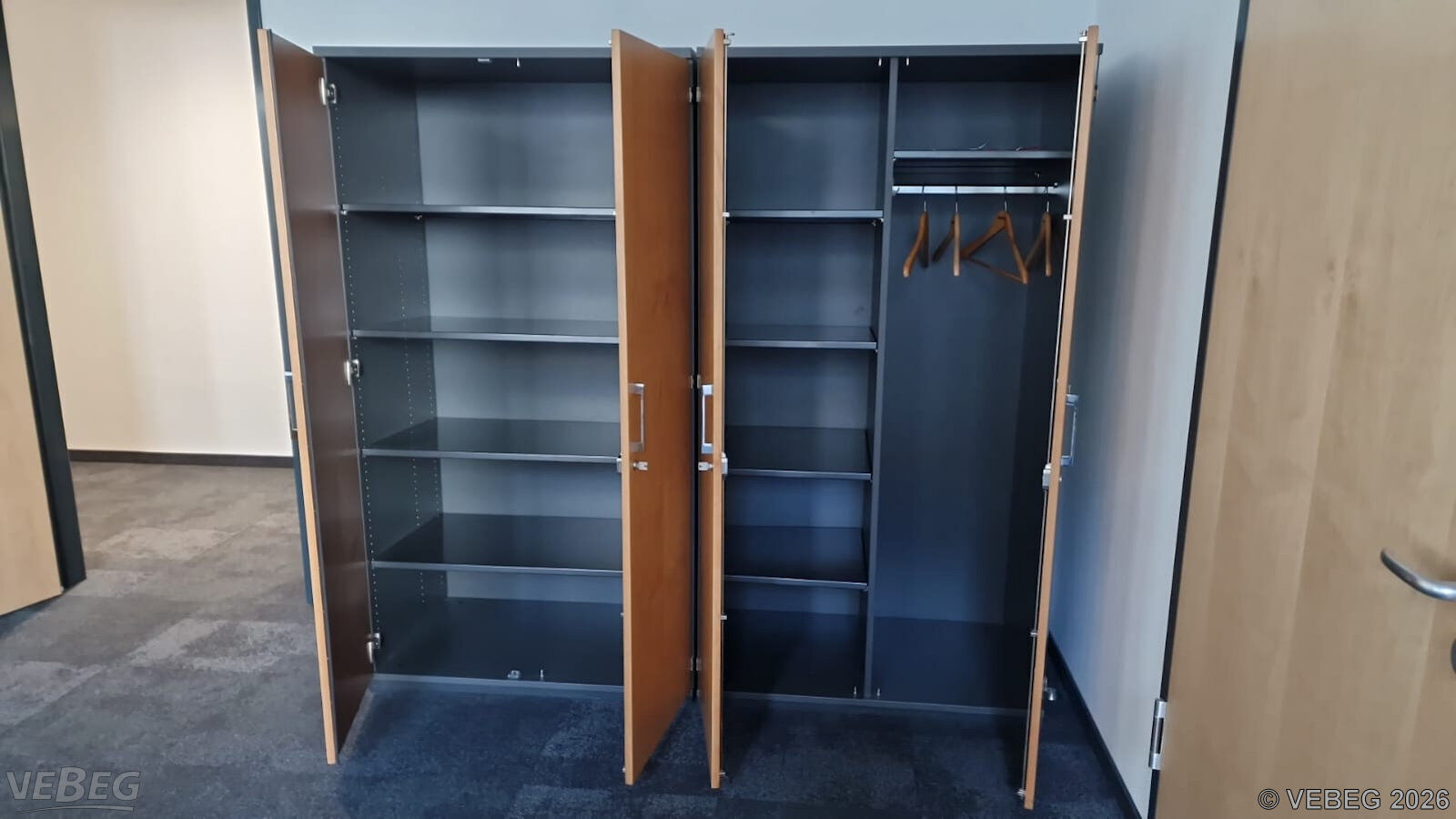1 Arbeitsplatz: 1 Garderobenschrank 40 x 63 x 207 cm,