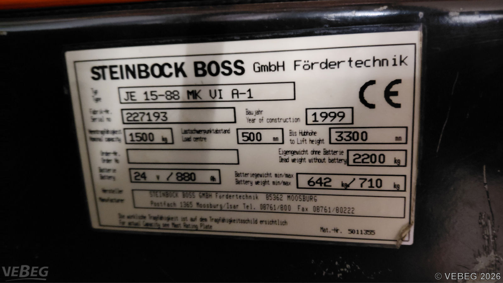 1 Stück JE 15-80 MK VB-1, Baujahr 1995, S/N 207619 sowie