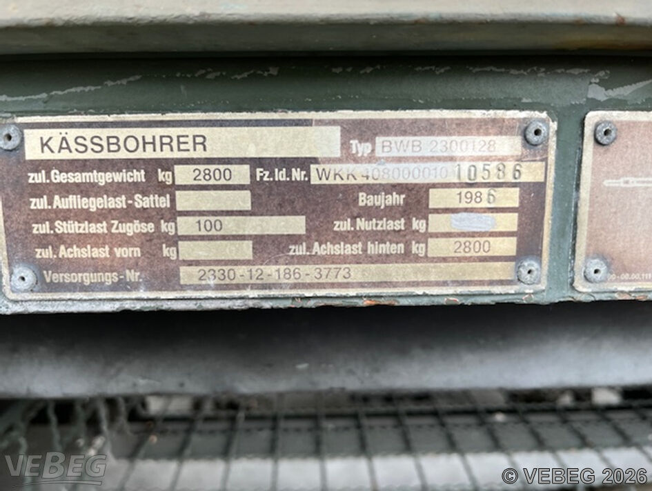 BemerkungenTermine für Besichtigung oder Abholung sind mit der zuständigen Lagerortdienststelle verpflichtend vorab per Telefon /oder E-Mail zu vereinbaren.Ausfuhrgenehmigungspflichtig [Info] . Die Rechnungsstellung erfolgt zuzüglich der gesetzlichen Umsatzsteuer. GebotsbasisStückBitte beachten Sie auch die Hinweise und Bedingungen im Vorspann zu dieser Ausschreibung: Die von der VEBEG angebotenen Fahrzeuge stammen aus Aussonderungen ihrer Auftraggeber. Einzelheiten zum Zustand der jeweiligen Fahrzeuge entnehmen Sie bitte den Lostexten. Zusätzlich verweisen wir ausdrücklich auf Abschnitte B und G unserer Allgemeinen Geschäftsbedingungen (AGB). Fahrzeuge die nach Einschätzung der VEBEG der Ausfuhrgenehmigungspflicht unterliegen, sind mit Verweis auf die Punkte E3 und E4 unserer AGB entsprechend gekennzeichnet. Zum Gebotspreis kommt die gesetzliche Umsatzsteuer hinzu. Die Differenzbesteuerung gemäß § 25a UStG wird nur angewendet, wenn dies ausdrücklich in der jeweiligen Ausschreibung angegeben ist. | Lagerort / StandortBundeswehrITBtl 292 - MatGrp Luitpold-Kaserne Rudolf-Diesel-Straße 1a Tel.: 09071 580-0 Durchwahl: 4028 89407 Dillingen |