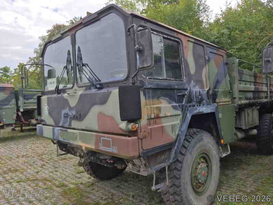 BemerkungenTermine für Besichtigung oder Abholung sind mit der zuständigen Lagerortdienststelle verpflichtend vorab per Telefon /oder E-Mail zu vereinbaren.Ausfuhrgenehmigungspflichtig [Info] . Die Rechnungsstellung erfolgt zuzüglich der gesetzlichen Umsatzsteuer. GebotsbasisStückBitte beachten Sie auch die Hinweise und Bedingungen im Vorspann zu dieser Ausschreibung: Die von der VEBEG angebotenen Fahrzeuge stammen aus Aussonderungen ihrer Auftraggeber. Einzelheiten zum Zustand der jeweiligen Fahrzeuge entnehmen Sie bitte den Lostexten. Zusätzlich verweisen wir ausdrücklich auf Abschnitte B und G unserer Allgemeinen Geschäftsbedingungen (AGB). Fahrzeuge die nach Einschätzung der VEBEG der Ausfuhrgenehmigungspflicht unterliegen, sind mit Verweis auf die Punkte E3 und E4 unserer AGB entsprechend gekennzeichnet. Zum Gebotspreis kommt die gesetzliche Umsatzsteuer hinzu. Die Differenzbesteuerung gemäß § 25a UStG wird nur angewendet, wenn dies ausdrücklich in der jeweiligen Ausschreibung angegeben ist. | Lagerort / StandortBundeswehrLogBtl 461 Nibelungen-Kaserne Dr. August-Stumpf-Straße 33 Tel.: 06282 9247-0 Durchwahl: 2040 74731 Walldürn |