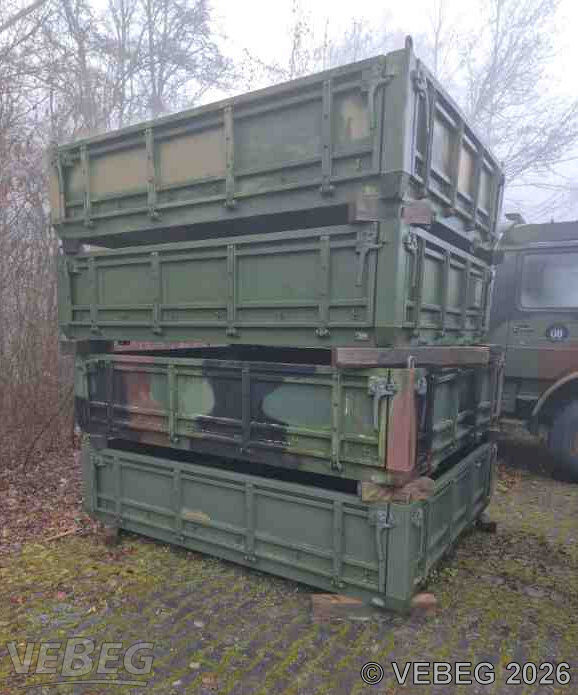 | BemerkungenTermine für Besichtigung oder Abholung sind mit der zuständigen Lagerortdienststelle verpflichtend vorab per Telefon /oder E-Mail zu vereinbaren.Ausfuhrgenehmigungspflichtig [Info] . Keine Verladehilfe möglich. Die Rechnungsstellung erfolgt zuzüglich der gesetzlichen Umsatzsteuer. GebotsbasisPostenBitte beachten Sie auch die Hinweise und Bedingungen im Vorspann zu dieser Ausschreibung: Die von der VEBEG angebotenen Waren stammen aus Aussonderungen ihrer Auftraggeber. Einzelheiten zum Zustand der jeweiligen Waren entnehmen Sie bitte den Lostexten. Insbesondere müssen technische Arbeitsmittel und Verbraucherprodukte i.S. des Geräte- und Produktsicherheitsgesetzes vor ihrer Verwendung instandgesetzt oder wiederaufgearbeitet werden. Zusätzlich verweisen wir ausdrücklich auf Abschnitte B und G unserer Allgemeinen Geschäftsbedingungen (AGB). Waren die nach Einschätzung der VEBEG der Ausfuhrgenehmigungspflicht unterliegen, sind mit Verweis auf die Punkte E3 und E4 unserer AGB entsprechend gekennzeichnet.Zum Gebotspreis kommt die gesetzliche Umsatzsteuer hinzu. Die Differenzbesteuerung gemäß § 25a UStG wird nur angewendet, wenn dies ausdrücklich in der jeweiligen Ausschreibung angegeben ist. | Lagerort / StandortBundeswehrBwDLZ Veitshöchheim Objektmanagement Walldürn Nibelungen-Kaserne Jahnstraße 1 Tel.: 06282 9247-0 Durchwahl: 2871 74731 Walldürn | ||||||