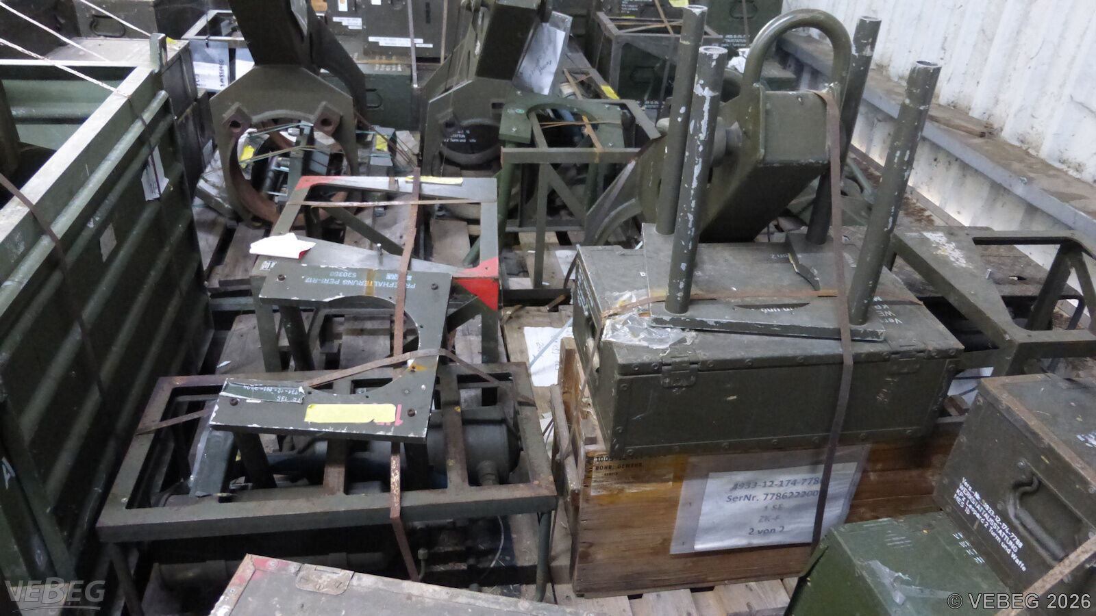 BemerkungenTermine für Besichtigung oder Abholung sind mit der zuständigen Lagerortdienststelle verpflichtend vorab per Telefon /oder E-Mail zu vereinbaren.Ausfuhrgenehmigungspflichtig [Info] .Die angegebene Telefonnummer dient nur zur Vereinbarung von Abholterminen. Auskünfte über den technischen Zustand des Materials werden nicht erteilt! Bei Fragen zum Zustand wenden Sie sich bitte an die VEBEG. Auskünfte sind unverbindlich; insoweit verweisen wir auf die Besichtigung vor Ort. Lagerhilfsmittel sind Eigentum der Dienststelle. Die Rechnungsstellung erfolgt zuzüglich der gesetzlichen Umsatzsteuer. GebotsbasisPostenBitte beachten Sie auch die Hinweise und Bedingungen im Vorspann zu dieser Ausschreibung: Die von der VEBEG angebotenen Waren stammen aus Aussonderungen ihrer Auftraggeber. Einzelheiten zum Zustand der jeweiligen Waren entnehmen Sie bitte den Lostexten. Insbesondere müssen technische Arbeitsmittel und Verbraucherprodukte i.S. des Geräte- und Produktsicherheitsgesetzes vor ihrer Verwendung instandgesetzt oder wiederaufgearbeitet werden. Zusätzlich verweisen wir ausdrücklich auf Abschnitte B und G unserer Allgemeinen Geschäftsbedingungen (AGB). Waren die nach Einschätzung der VEBEG der Ausfuhrgenehmigungspflicht unterliegen, sind mit Verweis auf die Punkte E3 und E4 unserer AGB entsprechend gekennzeichnet.Zum Gebotspreis kommt die gesetzliche Umsatzsteuer hinzu. Die Differenzbesteuerung gemäß § 25a UStG wird nur angewendet, wenn dies ausdrücklich in der jeweiligen Ausschreibung angegeben ist. | Lagerort / StandortBundeswehrBwDp Süd PFU Verwertung Major-Karl-Plagge-Kaserne An der neuen Bergstraße 102 Tel.: 06151 508-2230/2231 64319 Pfungstadt | ||||||||