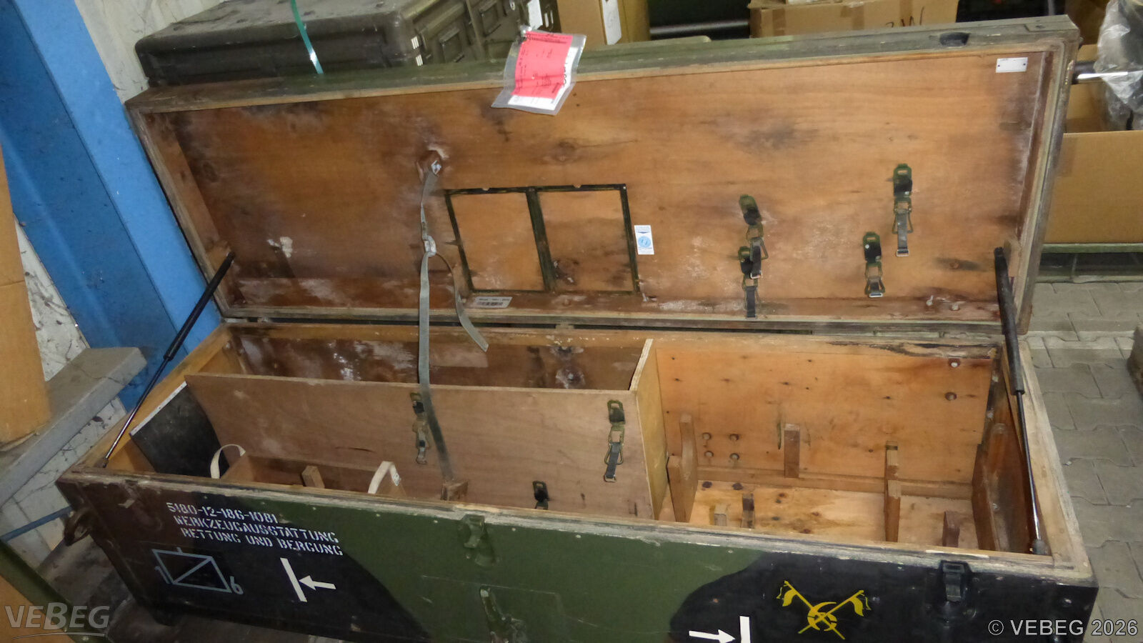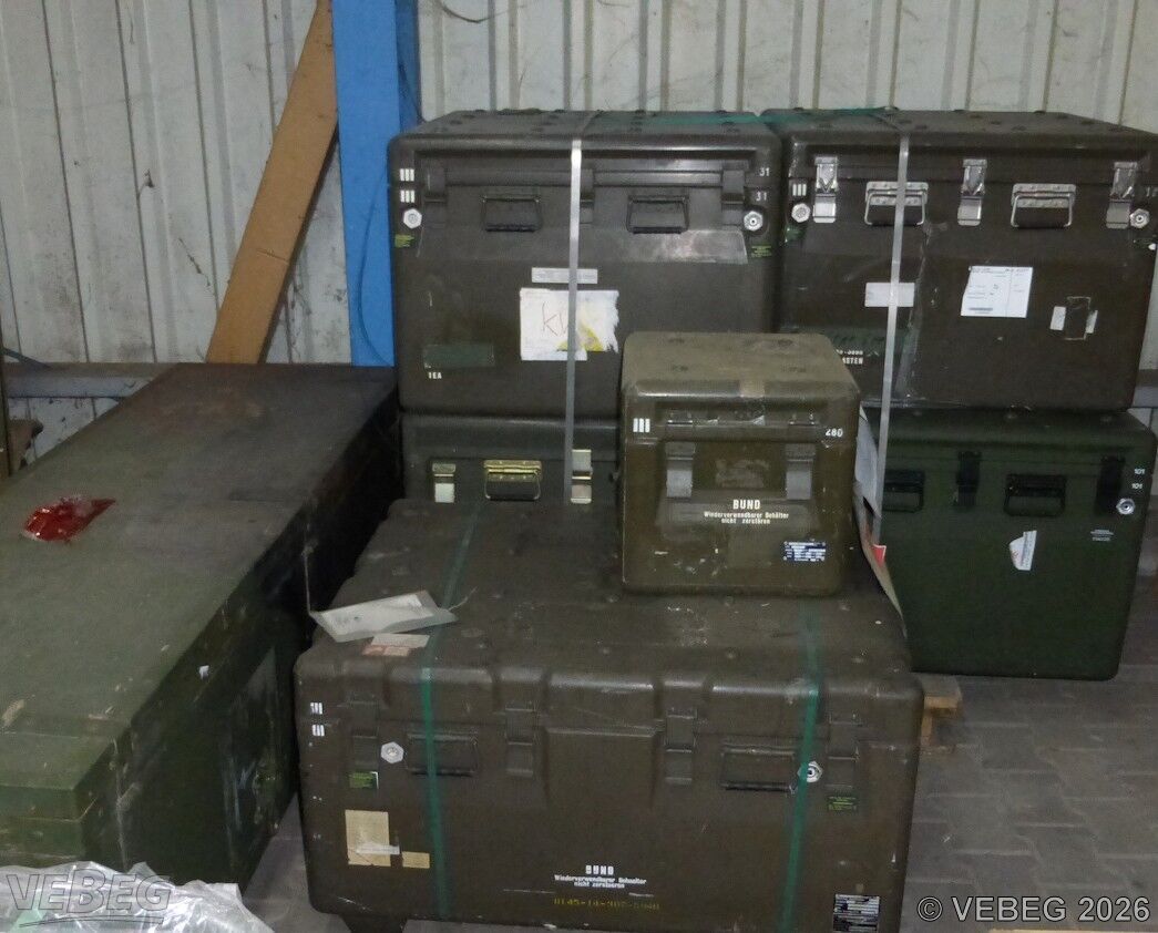 BemerkungenTermine für Besichtigung oder Abholung sind mit der zuständigen Lagerortdienststelle verpflichtend vorab per Telefon /oder E-Mail zu vereinbaren.Ausfuhrgenehmigungspflichtig [Info] .Die angegebene Telefonnummer dient nur zur Vereinbarung von Abholterminen. Auskünfte über den technischen Zustand des Materials werden nicht erteilt! Bei Fragen zum Zustand wenden Sie sich bitte an die VEBEG. Auskünfte sind unverbindlich; insoweit verweisen wir auf die Besichtigung vor Ort. Lagerhilfsmittel sind Eigentum der Dienststelle. Die Rechnungsstellung erfolgt zuzüglich der gesetzlichen Umsatzsteuer. GebotsbasisPostenBitte beachten Sie auch die Hinweise und Bedingungen im Vorspann zu dieser Ausschreibung: Die von der VEBEG angebotenen Waren stammen aus Aussonderungen ihrer Auftraggeber. Einzelheiten zum Zustand der jeweiligen Waren entnehmen Sie bitte den Lostexten. Insbesondere müssen technische Arbeitsmittel und Verbraucherprodukte i.S. des Geräte- und Produktsicherheitsgesetzes vor ihrer Verwendung instandgesetzt oder wiederaufgearbeitet werden. Zusätzlich verweisen wir ausdrücklich auf Abschnitte B und G unserer Allgemeinen Geschäftsbedingungen (AGB). Waren die nach Einschätzung der VEBEG der Ausfuhrgenehmigungspflicht unterliegen, sind mit Verweis auf die Punkte E3 und E4 unserer AGB entsprechend gekennzeichnet.Zum Gebotspreis kommt die gesetzliche Umsatzsteuer hinzu. Die Differenzbesteuerung gemäß § 25a UStG wird nur angewendet, wenn dies ausdrücklich in der jeweiligen Ausschreibung angegeben ist. | Lagerort / StandortBundeswehrBwDp Süd PFU Verwertung Major-Karl-Plagge-Kaserne An der neuen Bergstraße 102 Tel.: 06151 508-2230/2231 64319 Pfungstadt |