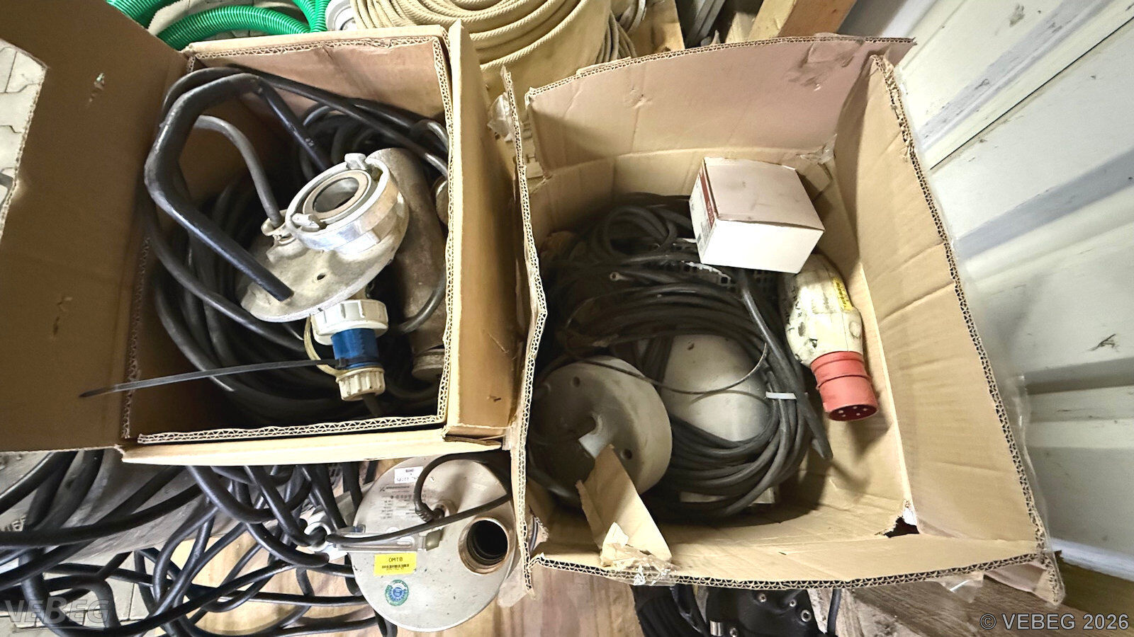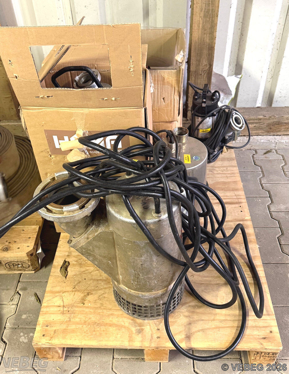 5 Tauchpumpen 400 - 2.000 l/min, defekt; 7 Druckschläuche B, 1 Saugschlauch B.