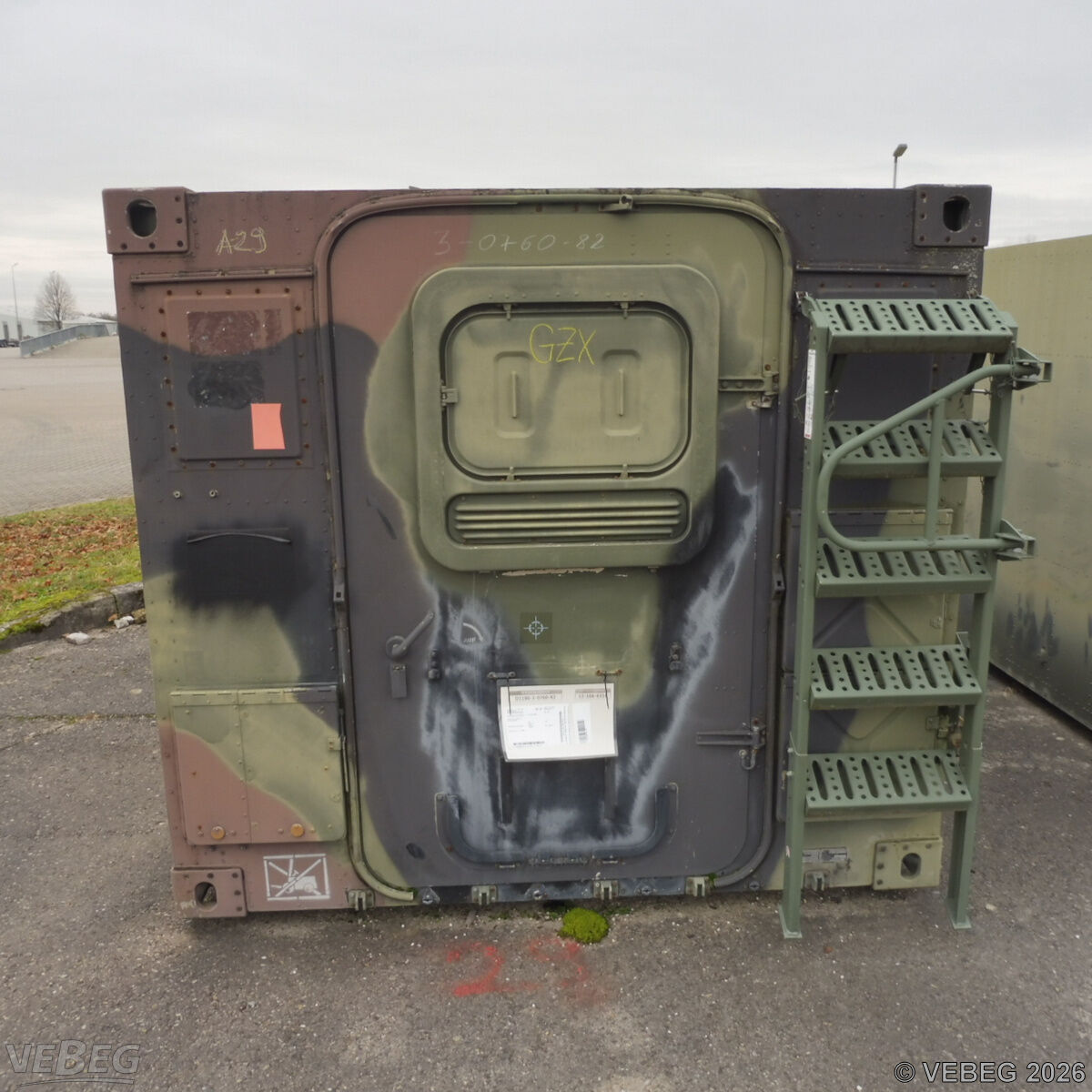 BemerkungenTermine für Besichtigung oder Abholung sind mit der zuständigen Lagerortdienststelle verpflichtend vorab per Telefon /oder E-Mail zu vereinbaren.Ausfuhrgenehmigungspflichtig [Info] .Lagerhilfsmittel sind Eigentum der Dienststelle. Keine Verladehilfe möglich. Die Rechnungsstellung erfolgt zuzüglich der gesetzlichen Umsatzsteuer. GebotsbasisStückBitte beachten Sie auch die Hinweise und Bedingungen im Vorspann zu dieser Ausschreibung: Die von der VEBEG angebotenen Waren stammen aus Aussonderungen ihrer Auftraggeber. Einzelheiten zum Zustand der jeweiligen Waren entnehmen Sie bitte den Lostexten. Insbesondere müssen technische Arbeitsmittel und Verbraucherprodukte i.S. des Geräte- und Produktsicherheitsgesetzes vor ihrer Verwendung instandgesetzt oder wiederaufgearbeitet werden. Zusätzlich verweisen wir ausdrücklich auf Abschnitte B und G unserer Allgemeinen Geschäftsbedingungen (AGB). Waren die nach Einschätzung der VEBEG der Ausfuhrgenehmigungspflicht unterliegen, sind mit Verweis auf die Punkte E3 und E4 unserer AGB entsprechend gekennzeichnet.Zum Gebotspreis kommt die gesetzliche Umsatzsteuer hinzu. Die Differenzbesteuerung gemäß § 25a UStG wird nur angewendet, wenn dies ausdrücklich in der jeweiligen Ausschreibung angegeben ist. | Lagerort / StandortBundeswehrBwDp Süd PFU Verwertung MatLgr 2 Koordinaten 49.064088, 8.401188 Labor-Service-Straße Tel.: 0721 12081-0 - BwDpSuedMatLgrKARLgrBer@bundeswehr.org 76149 Karlsruhe-Neureut |